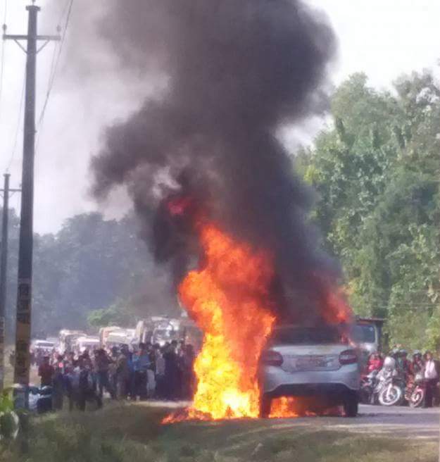 [caption id=\"attachment_104660\" align=\"aligncenter\" width=\"625\"]\"butwal_gadi-jalaeyo\" रूपन्देहीको देवदहमा प्रदर्शनकारीहरूले गाडीमा अागो लगाउँदै[/caption] काठमाडौं, १६ मंसिर । संविधानसभाबाट संविधान जारी भए लगत्तै मधेसमा आन्दोलन चर्किएका थियो । मधेस आन्दोलनकै कारण भारतले समेत पाँच महिना नाकाबन्दी लगायो । मधेस आन्दोलनका क्रममा झण्डै ५५ जनाले ज्यान गुमाए । मधेसमा चर्किएको आन्दोलनलाई प्रहरीले दमन गरी आन्दोलनकारीलाई सीमा पारि पुर्याएको मधेसी नेताहरुले आरोप लगाएका थिए । जतिबेला काठमाडौंमा फरक किसिमको आन्दोलन थियो, हिन्दु राज्यको माग गरिएको थियो । काठमाडौंमा पानी हान्ने प्रहरीले मधेसमा आन्दोलनकारी ताकेरै गोली हान्यो भन्दै मधेसी दलहरुले आक्रोश ब्यक्त गरेका थिए । अहिले संविधान संशोधन विधेयक ब्यवस्थापिका संसदमा दर्ता भएपछि प्रदेश नम्बर ५ मा त्यसको चर्को विरोध भइरहेको छ । ठाउँठाउँमा सडकमा टायर बालेर यातायात अबद्ध पार्ने कामहरु भएपछि प्रहरी प्रशासन भने मुकदर्शक जस्तो मात्र देखिएको छ । विरोधका नाममा सडकमा उत्रिएका युवाहरुले बुधबार बुटवलमा केही सवारीका साधनहरुमा आगजनी र तोडफोड गरेको भएपनि प्रहरीले ती घटनामा अहिलेसम्म कसैलाई नियन्त्रणमा लिएको छैन । प्रहरीको अगाडि नै सडकमा आगो बाल्ने,सडक अबरुद्ध पार्ने र बजार बन्द गर्ने लगायतका क्रियाकलाप हुँदा पनि प्रहरी किन मौन छ भन्ने प्रश्न यतिबेला जनस्तरबाट उठिरहेको छ । प्रहरीको असक्षमताका कारण प्रहरी पछाडि हटेको हो वा आन्दोलनमा प्रहरीको पनि मौन समर्थन हो भन्ने प्रश्न उठेको राजनीतिककर्मीहरुले समेत आशंंका गरिरहेका छन् । देशमा शान्ति सुरक्षाको जिम्मा लिएको नेपाल प्रहरीको सुरक्षा घेरा भित्रै हिजो काठमाडौंको वानेश्वर चोकमा प्रदर्शनकारीले दिउँसै टायर बालेर बिरोध गरे । केहीबेर त्यहाँको यातायात सेवा समेत प्रभावित हुन पुग्यो तर प्रहरी मुकदर्शक भएर आन्दोलनकारीका गतिबिधि हेरेर बसेको प्रत्यक्षदर्शीले बताएका छन् । [caption id=\"attachment_104560\" align=\"aligncenter\" width=\"697\"]\"pardarsan\" रूपन्देहीको बुटवलमा प्रदर्शनकारीहरूले सडकमा टायर बालेर प्रदर्शन गर्दै[/caption] प्रहरीको यो कस्तो सुुरक्षा हो, आँखै अगाडि सडकमा आगो बाल्दा पनि कुनै सक्रियता नदेखिनुले प्रहरीको कर्तव्यमै आशंका उत्पन्न भएको बुद्धिजीवीहरुको ठम्याइ छ । सरकारले संशोधन प्रस्ताव दर्ता गरेपछि सोमबार साँझबाटै बुटवल, प्यूठान, अर्घाखाँची, पाल्पा लगायतका जिल्लाहरुमा पाँच नम्बर प्रदेश टुक्राउने गरी ल्याएको संशोधन प्रस्तावको विरोध गरिएको छ । विरोधमा मुख्य गरी अनेरास्ववियु, नेविसंघ, अखिल छैठौं लगायतका संगठन तथा उद्योग वाणिज्य संघ लगायत दजनौं संघ संगठनहरुको सक्रियता देखिएको छ । एमालेकै अगुवाइमा ५ नम्बर प्रदेश बचाउ अभियान समेत बनाइएक