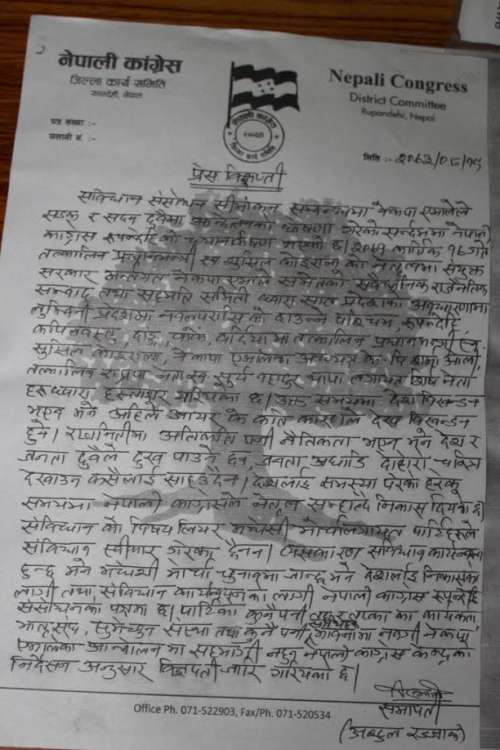 आन्दोलनमा नजान कार्यकर्तालाई काँग्रेस रुपन्देहीको निर्देशन
