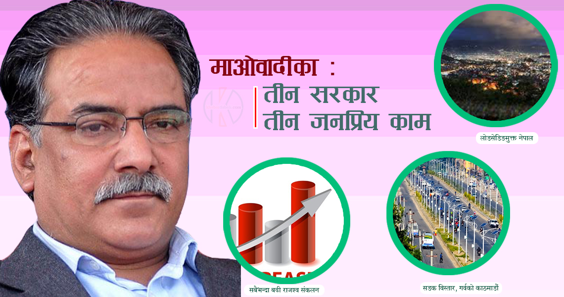 काठमाडौं, ७ पुस । शान्तिप्रक्रियापछि माओवादीले तीन पटक सरकारको नेतृत्व सम्हालेको छ । पहिलो संविधानसभा चुनावमा सबै भन्दा ठूलो पार्टी बनेको तत्कालिन माओवादी नेकपा एमालेसँग मिलेर गणतन्त्र नेपालको पहिलो सरकारको नेतृत्व गर्न पुग्यो । पुष्पकमल दाहाल ‘प्रचण्ड’ गणतन्त्र नेपालकै पहिलो प्रधानमन्त्री बन्न पुगे । \"\"२०६५ साउन ३१ गते प्रथम प्रधानमन्त्री निर्वाचित भएका प्रचण्ड नेतृत्वको सरकारले नेपालको इतिहासमै सबैभन्दा बढी राजश्व संकलन गरेको थियो । हाल नयाँ शक्ति पार्टीका संयोजक रहेका डा.बाबुराम भट्टराई प्रचण्ड सरकारका अर्थमन्त्री थिए । प्रचण्ड सरकारका अर्थमन्त्री भट्टराईले नै राजश्व चुहावटलाई नियन्त्रण गर्न सफल भएका कारण सरकारले राजश्व धेरै जुटाउन सफल भयो । त्यसैको जसका कारण तत्कालिन माओवादी नेता भट्टराईको हाइहाइ भयो । अर्थमन्त्री हुँदा राम्रो छवि बनाएका भट्टराईलाई तात्कालिन एकिकृत नेकपा माओवादीले २०६८ भदौ ११गते मुलुकको ३५ औं प्रधानमन्त्रीपदको उम्मेदवार बनायो र उनी निर्वाचित पनि भए । प्रधानमन्त्रीको निर्वाचनमा तत्कालिन माओवादीका नेता भट्टराईसँग र नेपाली कांग्रेसका रामचन्द्र पौडेल पराजित भएका थिए । माओवादीसँग नेपाली जनताको थुप्रै आशाहरु थिए । अर्थमन्त्री हुँदा नै नेपाली र देशको लागि राम्रो काम गरेर जनताको मन जित्न सफल भएका तत्कालिन प्रधानमन्त्री भट्टराईसँग जनताले आशा गर्नु स्वभाविक नै थियो । राजनीतिक खिचातानीले धेरै काम गर्न नसके पनि माओवादी सरकारले काठमाण्डौं उपत्यकामा सडकको मापदण्ड लागू गराएर सडक फराकिला बनाउने काम गरेको थियो । सडक फराकिलो बनाएको बिषयमा माओवादीले ताली मात्र होइन गाली पनि खायो । अहिले पनि काठमाडौं वा भनौं देशकै एउटा गर्व गर्न लायक सडकको रुपमा त्यतिबेला विस्तार भएको कोटेश्वर माइतिघर सडक छ । जो माओवादी सरकारको पहलमा बनेको थियो । तर विकाशको मुल फुटाएको भन्दै गैरमाओवादीहरुले तारिफ गरिरहँदा भट्टराई आफ्नै पार्टीभित्र आलोचित भएका थिए । पार्टीको एउटा समूह भट्टराईविरुद्ध सडकमै आन्दोलनमा उत्रिएका थिए । पहिलो संविधानसभाको चुनावपछि तत्कालिन माओवादीमा जति जनलहर उर्लिएको थियो दोस्रो संविधानसभाचुनावमात्यो लहर कायम हुन सकेन् । माओवादीले काठमाडौं उपत्यकामा हार व्यहोर्नुको प्रमुख कारण सडक बिस्तारलाई पनि मानिन्छ । के मानिएको छ भने सडक विस्तार हुँदा काठमाडौंका स्थानीयले ओगटेर बसेको सरकारी जग्गा सडकविस्तारसँगै खोसिनुले काठमाडौंका मानिसहरु माओवादीसँग रिसाए । तर माओवादी र आममानिसहरु भने अहिले पनि सडक विस्तारको कामलाई ऐतिहासिक र लोकप्रिय काम मान्ने गर्दछन् । अहिले नेकपा माओवादी केन्द्रका अध्यक्ष पुष्पकमल 
