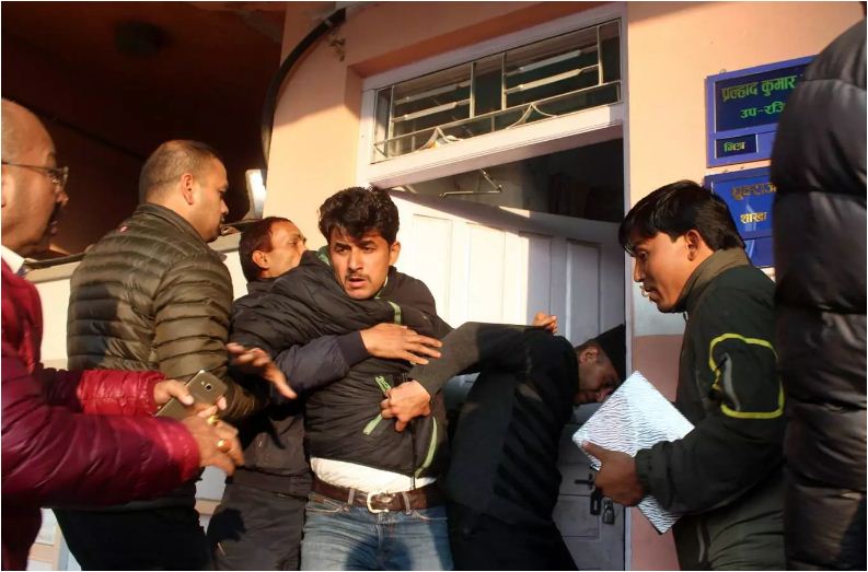 \"\"काठमाडौं, ७ पुस । निलम्बित अख्तियार प्रमुख लोकमान सिंह कार्कीमाथी सर्वोच्च अदालतमै हतपात र कालोमोसो दल्ने काममा विप्लव माओवादीका कार्यकर्ता संलग्न रहेको पुष्टि भएको छ । लोकमानलाई कालोमोसो दल्ने दुई युवाहरु प्रकाश शाही र चन्द्र बुढा विप्लव माओवादी निकट विद्यार्थी संगठनमा आवद्ध रहको विप्लव माअोवादी निकट अखिल क्रान्तिकारीका अध्यक्ष पूर्णबहादुर सिंहले खबरडबलीलार्इ बताए । भ्रष्ट्राचारलार्इ कारबाही गर्ने अभियान अन्तर्गत नै कारबाही गरिएकाे सिंहले बताए । विद्यार्थीका केन्द्रीय सदस्य रहेका शाही दाङका र बुढा रूकुमका हुन् । विप्लव माओवादीका प्रवक्ता खड्ग बहादुर विश्वकर्माले देशभरका भ्रष्टहरुको आफ्नो पार्टीको निशानामा रहेको बताए । बिहीबार आफूविरुद्धको मुद्दाको सुनुवाइका क्रममा अदालतमा हाजिर भएका कार्कीलाई अपरान्ह ४ बजेपछि माओवादी कार्यकर्ताले अनुहारमा कालोमोसो दलेर माओवादी जिन्दावादको नारा लगाएका थिए । लोकमानमाथि हातपातपछि भाग्न खोजेका उनीहरुलाई प्रहरीले घटनास्थलबाटै पक्राउ गरेको छ ।