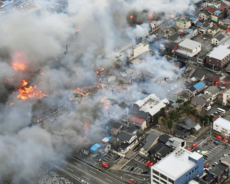 जापानी शहरमा आगलागीबाट दर्जनौ घरमा क्षति, सयौँ मानिस विस्थापित