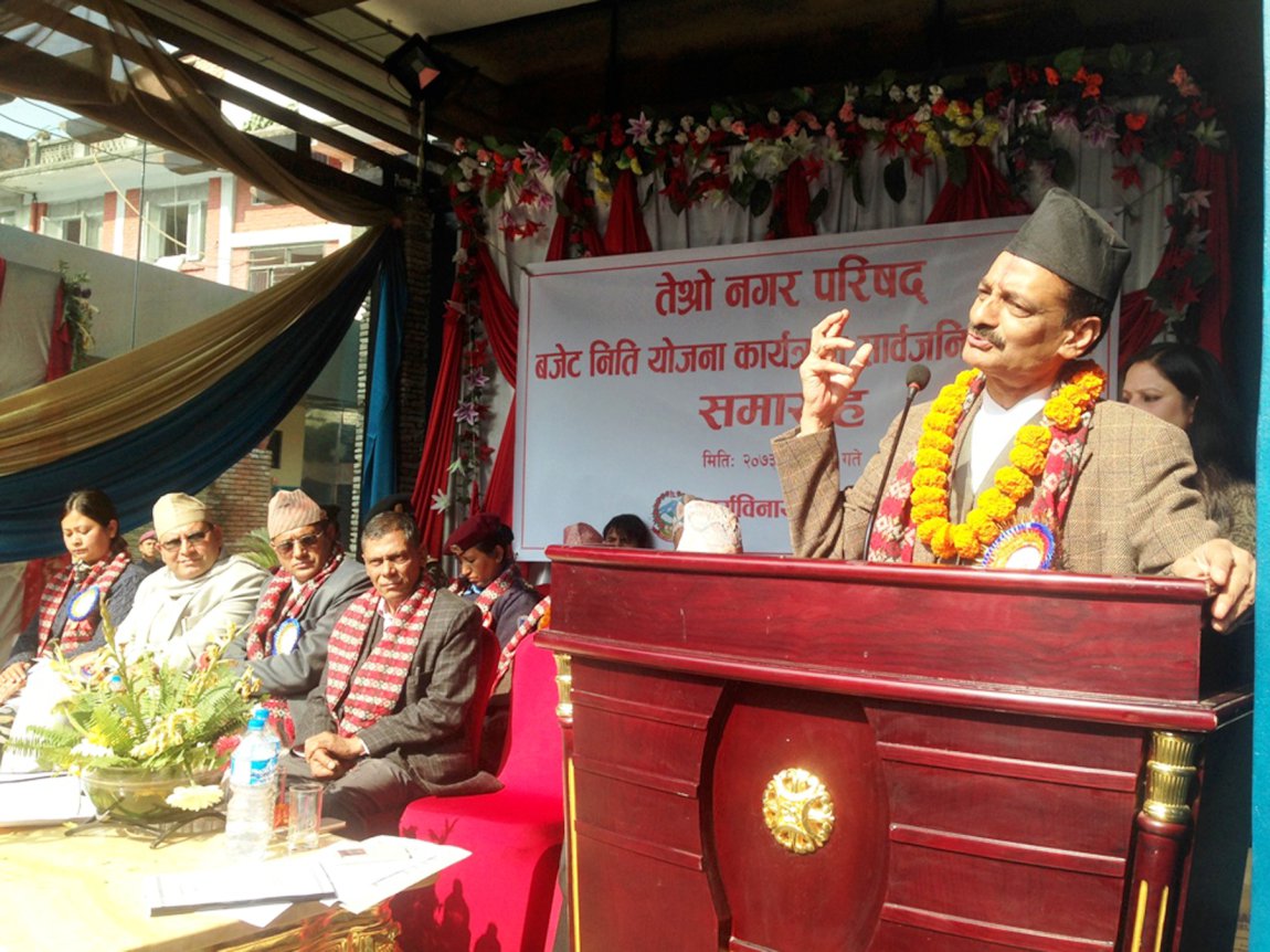 \"\"भक्तपुर, २८ पुस । उद्योगमन्त्री नविन्द्रराज जोशीले आगामी १० वर्षभित्र देशका युवालाई स्वदेशमै रोजगारीको सिर्जना गर्ने बताएका छन् । बिहीबार भक्तपुरको सूर्यविनायक नगरपालिकाको तेस्रो नगर परिषद्को नीति, बजेट तथा कार्यक्रम सार्वजनिक कार्यक्रममा बोल्दै उनले १० वर्षपछि नेपालका युवाले रोजगारीका लागि विदेश पलायन हुनु नपर्ने बताए । उद्योगको विकासले मात्रै अहिले देखापरेको रोजगारीको चुनौतीलाई चिर्न सक्नेमा जोड दिँदै उनले युवा लक्षित उद्योगको विकास जरुरी रहेकाले सरकारको ध्यान यसतर्फ केन्द्रित भएको बताए । मन्त्री जोशीले देशको विकासका लागि सबै एकजुट हुनुपर्नेमा जोड दिए । कार्यक्रममा सांसद रामेश्वर ढुङ्गेल, केदार सञ्जेल र अनुराधा थापामगरले स्थानीय निकायको निर्वाचन छिटो गर्नुपर्नेमा जोड दिए । नगरपालिकाका कार्यकारी अधिकृत यामलाल अधिकारीले आव २०७४÷७५ का लागि रु १९ करोड ४५ लाख ४८ हजारको बजेट सार्वजनिक गरे । नगरपालिकाको आन्तरिक स्रोतबाट रु छ करोड ५५ लाख, बाह्य स्रोतबाट रु १२ करोड ९० लाख ४८ हजार, चालु खर्चतर्फ रु पाँच करोड ३५ हजार र पुँजीगत खर्चतर्फ रु १४ करोड ४५ लाख १३ हजार विनियोजन गरिएको अधिकारीले जानकारी दिए। रासस
