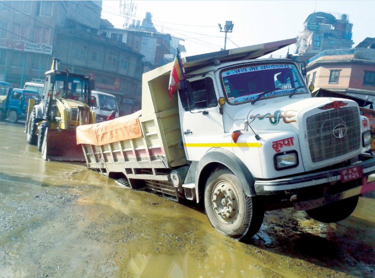 रिङरोडमै ट्रक फस्ने खाल्डा