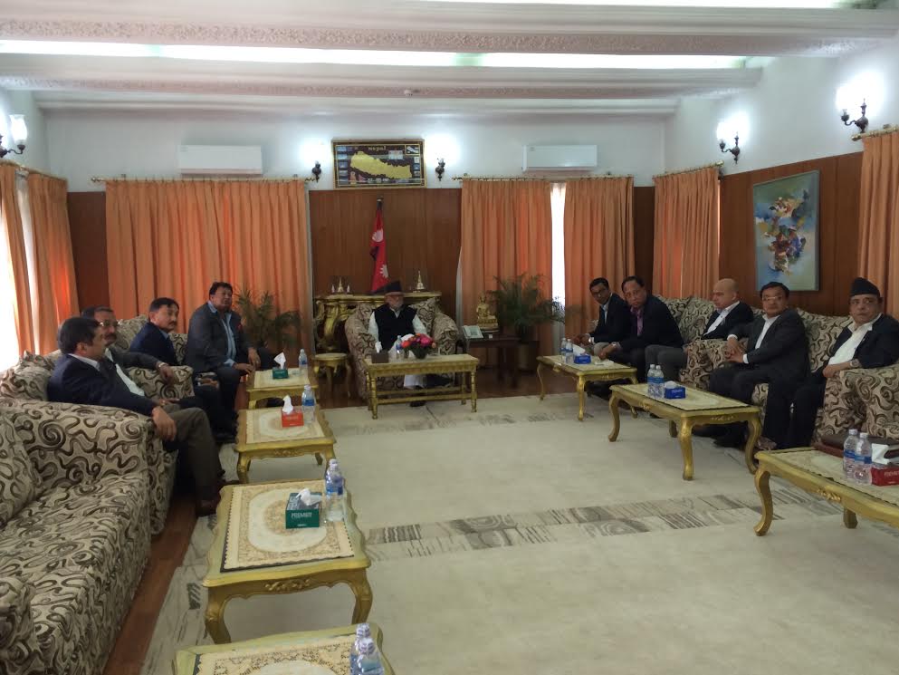 काठमाडौं, प्रधानमन्त्री सुशील कोइरालासँग नेपाल उद्योग बाणिज्य महासंघका कार्यवाहक अध्यक्ष पशुपति मुरार्काको नेतृत्वमा आएको प्रतिनिधि मण्डलले सोमबार बिहान प्रधानमन्त्री निवास बालुवाटारमा भेट गरेको छ । भेटमा नेपालको आर्थिक अवस्था, उद्योग बाणिज्यको क्षेत्रमा देखापरेका समस्या, तिनको समाधानका उपाय, नेपालको आर्थिक विकासका लागि तयार गर्नुपर्ने अनुकूल वातावरणका बारेमा कुराकानी भएको थियो । भेटमा प्रधानमन्त्री कोइरालाले देशको आर्थिक र सामाजिक विकासको लागि अहिले अनुकूल समय रहेकोले यसलाई सदुपयोग गर्न आग्रह गरेका थिए । अहिले कायम रहेको शान्ति, स्थायित्व र विकासको वातावरणलाई अझ अनुकूल बनाएर लैजानु पर्ने अपरिहार्यतालार्ई जोड दिदै कोइरालाले भने– ‘यो अन्तिम अवसर हुन सक्छ, त्यसैले सबैले शान्ति, स्थायित्व, संविधान र विकासलाई प्राथमिकतामा राख्नु पर्दछ ।’ नेपालको उद्योग बाणिज्य क्षेत्रको छाता संगठनको रुपमा रहेको उद्योग बाणिज्य महासंघले नेपालमा लगानीको लागि अनुकूल बाताबरण बन्दै गएको उल्लेख गरेका थिए । उनले सबै राजनीतिक दलहरुले शान्ति, स्थायित्व र विकासको मर्मलाई बुझिदिएको खण्डमा नेपालको विकासले गति लिन सक्ने विश्वास पनि व्यक्त गरेका थिए । प्रतिनिधि मण्डलमा महासंघका पूर्व अध्यक्षहरु चण्डीराज ढकाल, प्रदीपकुमार श्रेष्ठ, विनोदबहादुर श्रेष्ठ, कुशकुमार  श्रेष्ठ सहित वर्तमान कार्यसमितिका पदाधिकारीहरु सम्मिलित थिए ।
