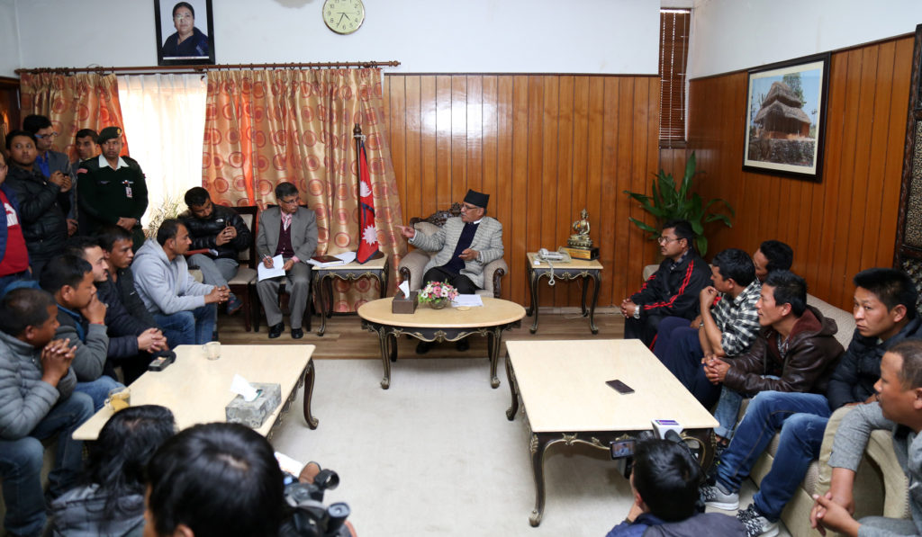साउदी जेलबाट छुटेका ११ नेपालीसँग भेट्दै प्रचण्डले भने, 'दुःख पाउनुको कारणबारे समीक्षा हुन्छ'