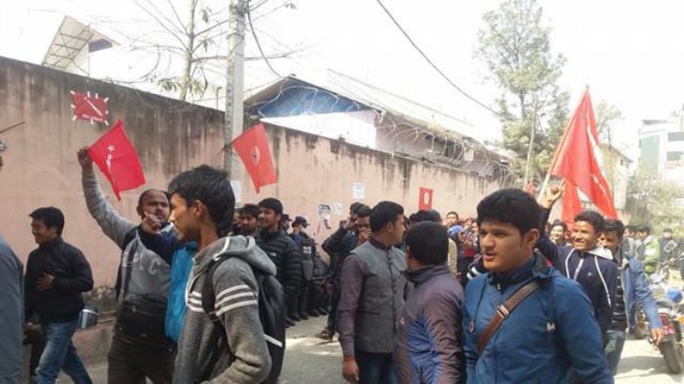 \"\"काठमाडौं, १६ फागुन । तोकिएकै समयमा चुनाव गराउन माग गर्दै अखिल क्रान्तिकारी (प्रचण्ड) आन्दोलनमा उत्रिएको छ । उपत्यकाका अधिकांश क्याम्पसहरुमा विभिन्न संगठनहरुले तालाबन्दी गरेपछि १८ फागुनमा हुने भनिएको स्ववियु चुनाव अन्योलमा परेको छ । चुनाव गराउन नसके क्याम्पसका पदाधिकारीले राजीनामा दिनुपर्ने माग राख्दै क्रान्तिकारी आन्दोलनमा उत्रेको हो । क्रान्तिकारीले विश्वभाषा क्याम्पसबाट ¥याली निकालेको छ ।¥याली त्रिचन्द्र, पद्मकन्या, शंकरदेव हुँदै आरआर क्याम्पसमा आएर कोण सभामा परिणत हुने क्रान्तिकारीले बताएको छ ।