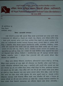 काठमाडौँ, नेत्रविक्रम चन्द विप्लव नेतृत्वको माओवादी निकट अखिल(क्रान्तिकारी)ले निजी विद्यालयले आफुखुसी शुल्कवृद्धि गरेको तथा सामुदायिक विद्यालयले निःशुल्क शिक्षाको मान्यताविपरीत शुल्क लिएकोभन्दै शिक्षा विभागमा ज्ञापनपत्र बुझाएको छ । शिक्षा विभागका महानिर्देशक डिल्लीराम रिमालले अनेरास्ववियु ९क्रान्तिकारी० को ज्ञापनपत्र बुझ्दै नयाँ शैक्षिकसत्र को प्रारम्भ सँगै अनुगमन गर्ने आश्वासन दिएका छन् । विद्यमान कानुन र मापदण्डलाई बेवास्ता गरी मनपरी शुल्क बढाउन र शुल्क उठाउन नपाइने बताउँदै अनुगमनबाट त्यस्ता कार्य भएको पाइएमा कडा कारबाही गर्ने आश्वासन दिएका छन् । ज्ञापनपत्र बुझाउन गएका क्रान्तिकारीका कोषाध्यक्ष लालबहादुर तामाङले सरकारले प्रतिबद्धता गरेअनुसार त्यस्ता विद्यालयलाई कारबाही नगरे आफूहरु पुनः आन्दोलनमा उत्रने चेतावनी दिएका छन् । उनले संविधानतः निःशुल्क शिक्षा पाउने हकलाई पनि पालना गराउनु राज्यको दायित्व हो भन्दै विगतमा आफूहरुसँग भएका सहमति पालना गर्न पनि माग गरिएको बताए।\"shulka \"shulka