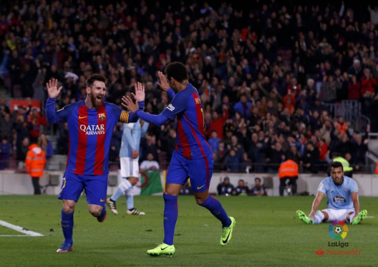 \"\"काठमाडौं, २२ फागुन । आइतबार विहान सम्पन्न खेलमा बार्सिलोनाका लियोनल मेसीले दुई गोल गरेका छन् भने २ गोलका लागी पास मिलाइदिएपछि सेल्टाभिगोमाथि ५–० को जित निकालेको छ । पहिलो हाफको २४ औं मिनेटमा अग्रता दिलाएका मेसीले ४० औं मिनेटमा नेयमारलाई गोल गर्नका लागी पास मिलाईदिएका थिए । ५७ औं मिनेटमा राकिटिकले अर्को गोल थपेका थिए भने ६४ औं मिनेटमा मेसीले नै अर्को गोल थपेका थिए । ६१ औं मिनेटमा मेसीले नै सामुअल उमटिटीलाई डिबक्सभित्र दिएको पासले गोलको दिशा समातेको थियो । यसैगरी आइतबार राति नै यो भन्दा अघि भएको खेलमा रियल मेड्रिडले एइबारलाई ४–० गोल अन्तरले पराजित गर्दै केही घण्टाका लागी शिर्षस्थानमा उक्लिएको थियो । बार्सिलोना फेरी शिर्षस्थानमा उक्लिएको छ । तर रियलले बार्सिलोना भन्दा १ खेल कम खेलेको छ ।