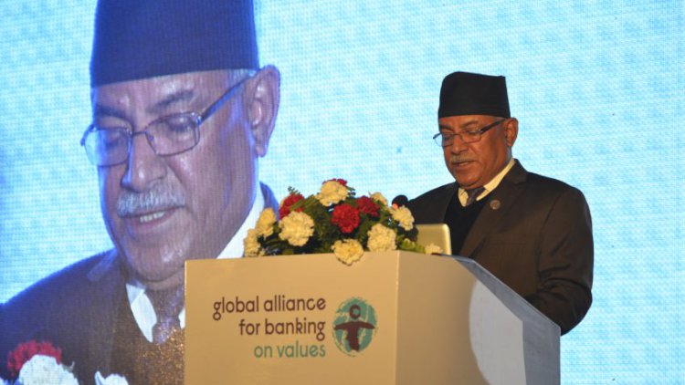 \"\"काठमाडौँ, २४ फागुन । प्रधानमन्त्री पुष्पकमल दाहाल ‘प्रचण्ड’ले बैंक तथा वित्तीय संस्थाले वित्तीय स्रोत परिचालन गरेर जनताको जीवनस्तर उठाउन निर्णायक भूमिका निर्वाह गर्नुपर्ने बताएका छन् । एलायन्स फर बैंकिङ अन भ्यालुज र एनएमबी बैंकले संयुक्त रुपमा आज यहाँ आयोजना गरेको सम्मेलनको उद्घाटनलाई सम्बोधन गर्दै उहाँले पुँजी निर्माणका लागि जीवन रक्षक मानिएको बैंक तथा वित्तीय संस्था आर्थिक विकास र समृद्धिको आधार भएको बताए । सरकारले केन्द्रीय बैंकमार्फत उत्पादनमूलक क्षेत्रमा लगानी प्रवद्र्धन गर्न पहल गरेको बताउँदै प्रधानमन्त्रीले सरकारले लगानीका लागि उपयुक्त वातावरण बनाउन अधिकतम प्रयास गरिरहेको स्पष्ट पारे । भर्खरै सम्पन्न पूर्वाधार सम्मेलन र नेपाल लगानी सम्मेलनमा सरकार तथा प्रमुख प्रतिपक्ष दलले लगानीका लागि पूर्ण प्रतिबद्धता व्यक्त गरेको उल्लेख गर्दै उहाँले आगामी दिनमा नेपालमा थप महत्वपूर्ण बैंक खुल्ने विश्वास दिलाए । उदारीकरण अभियानअन्तर्गत दोस्रो चरणको वित्तीय सुधारलाई सरकारले अगाडि बढाएको जानकारी दिँदै उहाँले सो चरणको सुधारमा बैंक तथा वित्तीय संस्थाको प्रणालीलाई कानुनमार्फत थप समावेशी बनाइने बताए । सन् २०२२ सम्ममा नेपाल अल्पविकसित मुलुकबाट विकासोन्मुख मुलकमा रुपान्तरण हुन र सन् २०३० सम्ममा मध्यम आय हुने मुलुकको स्तरमा पुग्न पूर्वाधारमा ठूलो लगानी आवश्यक भएको बताउँदै प्रधानमन्त्रीले नेपालले ऊर्जा, यातायात र पर्यटन क्षेत्रमा विशेष लगानीको अपेक्षा गरिएको धारणा राखे । ‘भ्यालुबेस्ड बैंकिङ’मार्फत व्यापार, उद्योग तथा उद्यमशीलतालाई बढाउनुपर्नेमा उहाँले जोड दिए । नाफाभन्दा जनता तथा समुदायको हित, असल शासन, जिम्मेवारी, पारदर्शिता, सामाजिक उत्तरदायित्व र बैंकिङ आचारमा प्राथमिकता दिने उद्देश्यले आयोजना गरिएको सम्मेलनको विभिन्न मुलुकका ४० बढी बैंकिङ संस्थाका प्रमुख कार्यकारी अधिकृतको सहभागिता छ । रासस