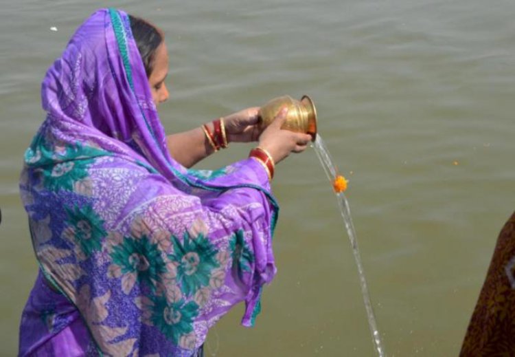 अस्ताउँदो सूर्यलाई अर्घ दिँदै मिथिलाञ्चलमा चैती छठ मनाइदै