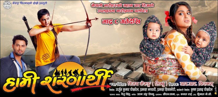 \"\"काठमाडौँ २२ असार । नायिका शिल्पा पोखरेल अभिनित फिल्म ‘हामी शरणार्थी’ भाद्र ८ गतेबाट प्रदर्शनमा आउने भएको छ । भुटानबाट लखेटिएर नेपालमा शरण लिएर बसेका शरणार्थीहरुको कथामा आधारित भएर निर्माण गरिएको फिल्म ‘हामी शरणार्थी’ नेपाली महिलाहरुको महान पर्व तीजलाई लक्षित गर्दै प्रदर्शनमा आउन लागेको बताइएको छ । फिल्मले भुटानी शरणार्थीले पाएको दुःख बोल्छ । फिल्ममा नायिका शिल्पा पोखरेलले दुई सन्तानकी आमाको भूमिकामा अभिनय गरेकी छिन् । उनीसँगै जिवन भट्टराई, प्रतिमा रसाईली, नयन घिमिरे, विक्रम श्रेष्ठ, प्रमिला उप्रेती, बालदीप राई र दिलीप योङहाङलगायतको अभिनय रहेको फिल्मका निर्देशक विजय लिम्बु केरुङले बताएका छन् ।फिल्म केरुङ् फिल्मस्को व्यानरमा निर्माण गरिएको उनले बताए । अर्जुनकुमार पोखरेल, प्रकाश भण्डारी र प्रकाश शिवाकोटीले संयुक्त रुपमा निर्माण गरेको फिल्ममा कृष्णप्रसाद पोखरेल कार्यकारी निर्माता छन् । फिल्ममा हिमाल केसीको द्वन्द, उत्तमजंग लिम्बुको संगीत, कमल राईको नृत्य, बैजु सिंहको पटकथा र संवाद तथा सौरभ लामाको छायांकन छ । फिल्मको वितरक आरआर फिल्मस् हो ।