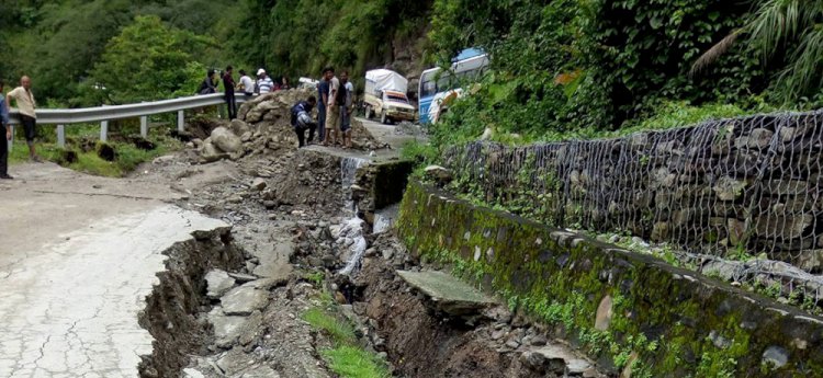 अरनिको राजमार्गको महभीरमा सडक भासियो, यातायात अवरुद्ध