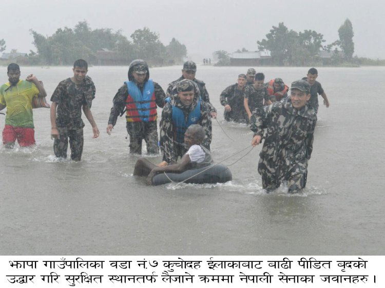 \"\"काठमाडौं । बाढीपहिरोमा परी मृत्यु हुनेको संख्या ९१ पुगेको छ । ३८ जना बेपत्ता छन् भने २५ घाइते भएका छन् । बेपत्ता भएकाको खोजी कार्यलाई तीव्रता दिइएको गृह मन्त्रालयका प्रवक्ता रामकृष्ण सुवेदीले बताए । शुक्रबार रातिदेखि तीन दिनसम्म आएको बाढीपहिरोबाट २ हजार ८ सय ४७ वटा घर पूर्ण रूपमा नष्ट भएका छन् । ३ हजार ७ सय ४७ विभिन्न पूर्वाधार संरचनामा क्षति भएको गृह मन्त्रालयले जनाएको छ । अाजको नयाँ पत्रिकामा खबर छ– पीडितहरूको उद्धारका लागि २६ हजार ७ सय व्यक्ति प्रत्यक्ष तथा अप्रत्यक्ष रूपमा खटिएका छन् । बेपत्ताहरूको खोजी, उद्धार र राहत वितरणका लागि सेनाका ७ र ६ निजी हेलिकोप्टरसहित मोटरबोट र रबर्टबोट प्रयोग गरिएको गृह मन्त्रालयका प्रवक्ता सुवेदीले बताए । प्रधानमन्त्री देउवा बाढी प्रभावित क्षेत्रमा प्रधानमन्त्री शेरबहादुर देउवा, उपप्रधानमन्त्री विजयकुमार गच्छदार, गृहमन्त्री जनार्दन शर्मासहितको टोलीले बाढी प्रभावित क्षेत्रको अवलोकन गरेको छ । प्रधानमन्त्रीको टोलीले बारा, पर्सा, रौतहट, सर्लाही, महोत्तरी, धनुषा, सिरहा, सप्तरी, मोरङ, सुनसरी र झापा क्षेत्रका बाढीपीडितलाई भेटेको छ । राहत वितरणमा कुनै कसर बाँकी नराख्न टोलीले स्थानीय प्रशासनलाई निर्देशन दिएको छ । १२ जिल्लामा राहत वितरण सरकारले तराईका १२ जिल्लाका बाढीपीडित परिवारलाई राहत वितरण गरेको छ । झापा, सुनसरी, सप्तरी, सर्लाही, धनुषा, महोत्तरी, बारा, रौतहट, दाङ, बाँके, बर्दिया र कैलालीमा राहत वितरण गरिएको हो । अरू राहत सामग्री आवश्यकता अनुसार वितरण गरिने प्रवक्ता रामकृष्ण सुवेदीले बताए । कुन जिल्लामा कस्तो राहत झापा : विस्थापित ७ सय परिवारका लागि ८५१ थान त्रिपाल, ४७५ थान कम्बल, २६१ सेट भाँडाकुँडा र ड्राइफुड वितरण । सुनसरी : चामल ६४५० केजी, चिउरा १२०६० केजी, भुजा ६७१० केजी, नुन ९१० केजी, चाउचाउ २१४५० गोटा, खाने तेल ५० लिटर, बिस्कुट ५० कार्टुन, दालमोठ ६४० पोका र दाल ३२५ केजी वितरण । सप्तरी : त्रिपाल ६७० थान, चिउरा १५ बोरा, भुजिया ५० बोरा, चामल १० बोरा, लत्ताकपडा १४६ थान, विराटनगरबाट ५ हजार केजी ड्राइफुड पठाएको छ । सर्लाही : चिउरा ६२८० केजी, चाउचाउ ३४२ कार्टुन, नुन ४५० केजी, चिनी ३०० केजी, दालमोठ ८ बोरा, प्याज १५० केजी, लत्ताकपडा २०० सेट, त्रिपाल १८३ थान, साबुन ३० वटा, कम्बल ३० थान, बाल्टिन ३० वटा, मग ३० वटा, अन्य खाद्य सामग्री ५ हजार केजी । धनुषा : त्रिपाल १५ वटा, चामल १० क्विन्टल, चिउरा १५ क्विन्टल, मुरै दुई क्विन्टल, दाल एक क्विन्टल, आलु ३ क्विन्टल, चिनी २ क्विन्टल, खाने तेल १५० लिटर । महोत्तरीः चिउरा ११४ केजी, भुजिया ६२ केजी, चिनी २५ केजी र ३०० जनालाई खाना खुवाइयो । बारा : चाउचाउ ८५ कार्टुन, चिउरा १७ सय केजी, दालमोठ १४० केजी, लिटो ९३ 