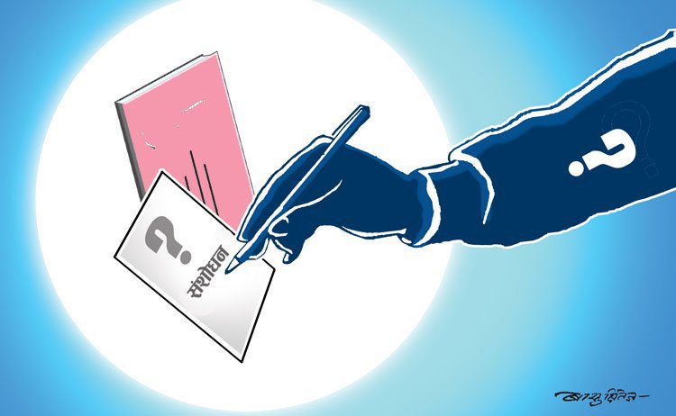 \"\"काठमाडौं । संविधान संशोधन प्रस्तावमाथि सांसदहरूले बोल्ने क्रम सकिएपछि आज (सोमबार) संसद्मा निर्णयार्थ पेस हुने भएको छ । मतदान प्रक्रियामार्फत संशोधन प्रस्ताव टुंगो लगाइने भएको हो । संशोधन प्रस्तावमाथि संशोधन हालेका ५० संशोधनकर्ताले आइतबार नै आफ्ना धारणा राखिसकेका छन् । तर, अन्य सांसदले बोल्न इच्छा देखाएपछि छलफल सोमबारसम्मका लागि लम्बिएको हो । एमालेलाई दोषी देखाउन ल्याइयो अाजको नयाँ पत्रिकामा खबर छ– एमाले सांसदहरूले आफ्नो दललाई दोषी देखाउन संशोधन प्रस्ताव ल्याइएको आरोप लगाएका छन् । संशोधन प्रस्ताव पास वा फेल जे भए पनि टुंगो लगाउन सत्तापक्ष तयार हुनुले विपक्षीलाई दोषी देखाउने षड्यन्त्र मात्र भएको उनीहरूको दाबी छ । संशोधन प्रस्ताव पारित नहुने निश्चित भए पनि सरकारले निर्णयार्थ प्रस्ताव प्रस्तुत गरेर राजनीति गरेको टिप्पणी गरे । एमाले सांसद भीम रावलले संशोधन प्रस्तावले संविधानको मर्यादालाई कमजोर बनाएको टिप्पणी गरे । ‘सरकारले ल्याएको यो प्रस्तावले जननिर्वाचित प्रतिनिधिहरूको अधिकार कुण्ठित गरेको छ । यो स्वीकार्य छैन,’ उनले भने । अर्का एमाले सांसद रवीन्द्र अधिकारीले प्रमुख प्रतिपक्षी दलसँग छलफल नगरी सरकारले संशोधन प्रस्ताव ल्याएकोमा आपत्ति जनाए । उनले संविधान संशोधनको पक्षमा दुईतिहाइ पुग्नै नसक्ने भन्दै सत्तापक्षले जबर्जस्त प्रस्ताव ल्याएको बताए । सांसद अग्नि खरेलले संविधान संशोधनले जनताको भावनालाई सम्बोधन नगर्ने बताए । नजिकिँदै गरेको २ नम्बर प्रदेशको स्थानीय तहको निर्वाचन र अरू निर्वाचनमा एमालेलाई कमजोर साबित गर्न सत्तापक्षले संशोधन प्रस्ताव ल्याएको एमाले सांसदहरूको टिप्पणी छ । अझै ३५ सांसदले बोल्न बाँकी संविधान संशोधन प्रस्तावमाथि अझै तीन दर्जन सांसदले बोल्न बाँकी छ । आइतबार संसद्मा संशोधनकर्ताले बोलिसकेपछि सभामुख ओनसरी घर्तीले संशोधन प्रस्तावमाथि बोल्न चाहने सांसदलाई नाम टिपाउन थप आधा घन्टाको समय दिएकी थिइन् । सो समयभित्र ४० जना सांसदले नाम टिपाएका थिए । त्यसमध्ये पाँचजना सांसदले आइतबार नै बोलिसकेका छन् । अब सोमबार ३५ सांसदले धारणा राख्ने संसद् सचिवालयका प्रवक्ता भरतराज गौतमले बताए । संशोधन प्रस्तावमाथि बोल्नेक्रम सकिएपछि सबै संशोधनलाई निणयार्थ प्रस्तुत गरिनेछ । ‘सबै संशोधनलाई निर्णयार्थ प्रस्तुत गरिसकेपछि एकमुष्ठ संशोधन विधेयकलाई प्रस्तुत गरिनेछ । त्यसमा पक्ष–विपक्षमा मत संकलन गरिनेछ,’ पौडेलले भने । दोस्रो संशोधन प्रस्ताव पास होला ? तत्कालीन प्रधानमन्त्री पुष्पकमल दाहाल प्रचण्ड नेतृत्वको सरकारले गत २९ चैतमा संसद्मा दोस्रो संविधान संशोधन प्रस्ताव दर्ता गरेको थियो । त्यसअघि प्रचण्ड नेतृत्वकै सर
