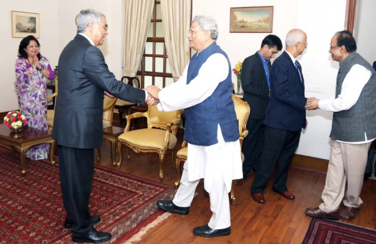 \"\"काठमाडौं । भारतका विभिन्न राजनीतिक दलका नेताले आसन्न निर्वाचनमार्फत नेपालमा लोकतन्त्र सुदृढ होस् भन्ने शुभकामना दिएका छन् । प्रधानमन्त्री शेरबहादुर देउवासँग शुक्रबार बिहान राष्ट्रपतिभवनमा खाजासहितको भेटवार्तामा उनीहरूले नेपालको शान्ति र स्थिरताका लागि भारतबाट हरसम्भव सहयोग हुने बताएका हुन् । संविधान संशोधनमार्फत सबैलाई लिएर जाने देउवाको प्रयासलाई सराहना गरेका उनीहरूले प्रान्त र केन्द्रीय संसद्को निर्वाचनपछि धेरै समस्या समाधान हुने विश्वाससमेत गरेका छन् । अाजको नयाँ पत्रिकामा खबर छ– प्रधानमन्त्री हैदराबाद जानुअघि शुक्रबार बिहान भारतीय माक्र्सवादी कम्युनिस्ट पार्टीका महासचिव सीताराम येंचुरी, जनता दल युनाइटेडका पूर्वअध्यक्ष शरद यादव, सोही दलका उपाध्यक्ष केसी त्यागी, बहुजन समाज पार्टीका सुधीन्द्र भदोरिया, सांसद डिपी त्रिपाठी, राष्ट्रिय स्वयंसेवक संघका नेता इन्द्रेस कुमारले सामूहिक भेटवार्ता गरेका थिए । येंचुरीले लोकतान्त्रिक आन्दोलनमा सहभागी सबै दलबीच साझा समझदारी बनाएर लोकतन्त्र संस्थागत गर्नुपर्ने सुझाब दिएका थिए । दोस्रो जनआन्दोलनका समर्थक तथा दिल्लीमा भएको १२बुँदे समझदारीका सूत्रधारमध्येका एक येंचुरीले कांग्रेस, एमाले, माओवादीसहित परिवर्तनकारी दलहरू लोकतन्त्र संस्थागत गर्न एउटै ठाउँमा उभिनुपर्ने सुझाब दिएका हुन् । यसमा देउवाले सहमति जनाउँदै सक्दो प्रयास आफूले गरिरहेको बताएका थिए । इन्द्रेसले नेपालमा बढिरहेको धर्मान्तरणमा चासो राखेका थिए । उनले नेपाल र भारतबीच जनस्तरको सम्बन्धलाई विकास र समृद्धिमा बदल्नुपर्ने पनि बताएका थिए । भदोरियाले देउवाको नेतृत्वमा लोकतन्त्र संस्थागत भएको हेर्न चाहेको बताए । ‘आगामी निर्वाचनमा सबै पक्ष सहभागी हुने वातावरण देउवाजीको कुशल नेतृत्वमा तयार भएको छ, अब नेपालको लोकतन्त्र सुदृढ हुन्छ भन्नेमा हामी विश्वस्त छौँ भन्ने कुरा मैले राखेँ,’ उनले नयाँ पत्रिसकासँग भने । कांग्रेसका संस्थापक नेता बिपी कोइरालासँग लामो समय संगत गरेका भदोरियाले संविधान संशोधन नभए पनि निर्वाचनको माहोल बनेको र निर्वाचनमार्फत सबैका आकांक्षा सम्बोधनको प्रयास भए नेपाललाई फाइदा हुने उनको सुझाब थियो । त्यागीले नेपाल र भारतबीच बाँध र बाढीका समस्याबारे समाधान हुनुपर्ने बताएका थिए । ‘मैले नेपालको शान्ति, स्थिरता र लोकतन्त्रको सुदृढीकरणको कुरा गरेँ, योभन्दा पनि बिहार र नेपालबीच बाढी नियन्त्रणका विषयमा तत्कालै कदम चाल्नुपर्छ भन्ने विषय राखेको छु,’ उनले नयाँ पत्रिकासँग भने । बिहारका मुख्यमन्त्री नीतीश कुमार अध्यक्ष रहेको जेडियूका नेता त्यागीले बाढी नियन्त्रण, बाँध नियन्त्रणलगायतका विषयमा समाधा