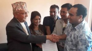 \"\"काठमाडौं। पुर्व प्रधानमन्त्री एवं एमाले अध्यक्ष केपि शर्मा ओलीले शिक्षा ऐनको नवौं संशोधन फिर्ता गर्न सक्दो पहल गर्ने वताएका छन्। आज विहान आफ्नै निवासा पुगेका संयुक्त विद्यार्थी संगठनका नेताहरुको ज्ञापनपत्र वुझ्दै ओलीले जो अगाडिको आयो उसकै कुरामा ताली लाउने प्रवृत्तिले मुलुक नवन्ने वताए। \'हतार गरेर राति राति विधेयक पारित गर्ने कुरा उपयुक्त हैन।\'- ओलीले भने -\' प्रतिपक्ष दलको वहुमत त हुंदैन,तर यसलाई फिर्ता गराउन सक्दो पहल गर्नेछु।\' आजै विद्यार्थी नेताहरुले काङ्ग्रेस कार्यवहाक सभापति विमलेन्द्र निधिलाई समेत भेटेर ज्ञापन पत्र दिएका छन्।ज्ञापन पत्र वुझ्दै निधिले यसमा सकारात्मक पहल गर्ने वताए। शिक्षक लाइसेन्स लिएका सात लाख विद्यार्थीलाई ऐनले प्रत्यक्ष असर गर्ने भन्दै फिर्ता लिन माग गर्दै विद्यार्थी नेताहरु विहान ओलीको वालकोट निवास पुगेका थिए।सवै पार्टीका शिर्ष नेतालाई दवाव दिने कार्यक्रम अन्तर्गत विद्यार्थी नेताहरुले त्यपसछि निधिलाई भेटेका हुन्। आजै सभामुख ओनसरी घर्तीलाई भेटेर ऐनको  प्रक्रिया थप अघि नवढाउन दवाव दिने अखिल(क्रान्तिकारी )का उपाध्यक्ष सुरेन्द्र बस्नेतले वताए।