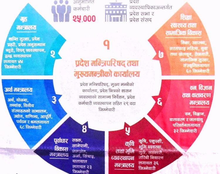 काठमाडाै । संघीय प्रशासनिक पुनःसंरचना समितिले प्रदेश मन्त्रिपरिषद् तथा मुख्यमन्त्रीको कार्यालयसहित सातवटा मन्त्रालयको खाका तयार पारेको छ ।