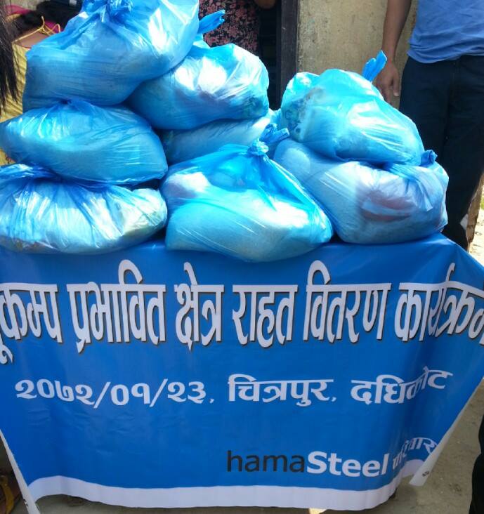 हामा स्टीलद्वारा दधिकोटका भूकम्प पिडितलाई राहत