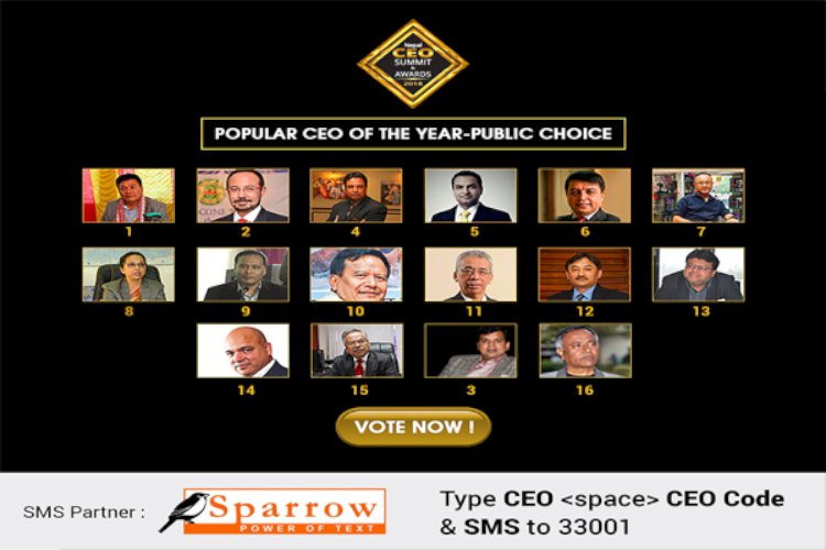 \"\"काठमाडौं । अर्थ तथा ब्यवसायीक क्षेत्रमा कृयाशिल ब्यक्तिको सम्मानमा प्रदान गर्न लागिएको ‘सिइओ अफदिइयर’ अवार्डका लागी भोटिङ्ग खुल्ला भएसँगै यसको चर्चा पनि चुलिएको छ । नेपालमा पहिलो पटक प्रदान गर्न लागिएको अवार्डको पपुलर सिइओ अफ दि इयर बिधाका लागी नेपाल बिद्युत प्राधिकरणका प्रबन्ध निर्देशक कुलमान घिसिङ्गदेखि उद्योगी तथा सांसद बिनोद चौधरीसम्मको प्रतिस्पर्धाले चर्चा पाएको हो । आइतवार रिपोर्टर्स क्लब नेपालमा आयोजकले पत्रकार सम्मेलन गरेर पपुलर सिइओ अफ दि इयरका लागी भोटिङ्ग खुल्ला गरिएकोे जानकारी दिएको थियो । ६ वटा बिधामा प्रदान गर्न लागिएको अवार्डको अन्य ५ बिधाको भने जूरी कमिटीले फाइनलगर्ने र पपुलर सिइओ अफदिइयरका लागीभने पब्लीकभोटिङ्ग मार्फत फाईनल गर्ने आयोजकले जनाएको छ । नेपाल कै ठुला घराना, उद्योगी, ब्यवसायीदेखि प्राधिकरणका प्रवन्ध निर्देशकसम्म यस बिधामा नोमिनेशनमा परेका हुन् । १६जनाको यस अवार्डका लागी नोमीनेशनमा परेको र सबैलाई भोटिङ्ग मार्फत नै सबै भन्दा धेरै भोट ल्याउनेलाई अवार्ड प्रदान गरिने पत्रकार सम्मेलनमार्फत बताईएको छ । अनलाईन भोटिङ्ग ५० प्रतिशत तथा मोवाइल भोटिङ्ग ५० प्रतिशत सर्वाधिक भोट पाउने ब्यक्तिलाई पपुलर सिइओ अफदिइयरको अवार्ड प्रदान गरिने जनाइएको छ । अगामी फागुन ३० गते होटल सोल्टीमा नेपाल सिइओ समिट तथा अवार्ड कार्यक्रम माझ अर्थ तथा ब्यवसाय जगतमा कृयासिल तथा सफल सिईओ, चेयरपर्सन, डाइरेक्टर तथा म्यानेजिङ डाइरेक्टरहरुलाई अवार्ड प्रदान गरिनेछ । कार्यक्रममा १७ देशका ३०० जनाको सहभागी रहनेछ । आफुलाई मन परेको ब्यक्तीलाई https://nepalceosummit.com/ceopopularchoice/भोट गर्न सकिनेछ ।