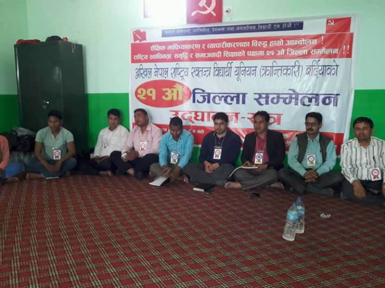 \"\"बर्दिया । अखिल (क्रान्तिकारी) का केन्द्रीय उपाध्यक्ष तिलकराज भण्डारी ले एकताकाे संक्रमणकाल छिटाे अन्त्य गर्नुपर्नेमा जाेड दिएका छन् । अखिल (क्रान्तिकारी) बर्दियाकाे २१ अाैं जिल्ला सम्मेलनकाे उद्घाटन सत्रलाई सम्बोधन गर्दै उपाध्यक्ष भण्डारीले विभिन्न बहानामा एकता प्रक्रिया ढिला हुने र व्यवस्थित बहस नहुने कुराले वाम एकतालाई फाईदा नहुने बताएका छन् । एकताकाे सन्दर्भमा जनयुद्धलाई अन्डरस्टिमेट गर्ने शक्तिहरूलाई एकता बिराेधीकाे संज्ञा दिएका छन् । जनवादी क्रान्तिकाे चरणमा प्राप्त शैक्षिक हकहरूलाई कार्यान्वयन गर्दै समाजवादी शिक्षा प्राप्तिकाे अान्दाेलनमा सर्वप्रथम विद्यालय तहबाट शैक्षिक निजिकरणकाे अन्त्य गर्ने अभियानलाई शैक्षिक अान्दाेलन मात्रै हाेईन कि सामाजिक अान्दाेलनकाे रुपमा विकास गर्नुपर्नेमा जाेड दिएका छन् ।