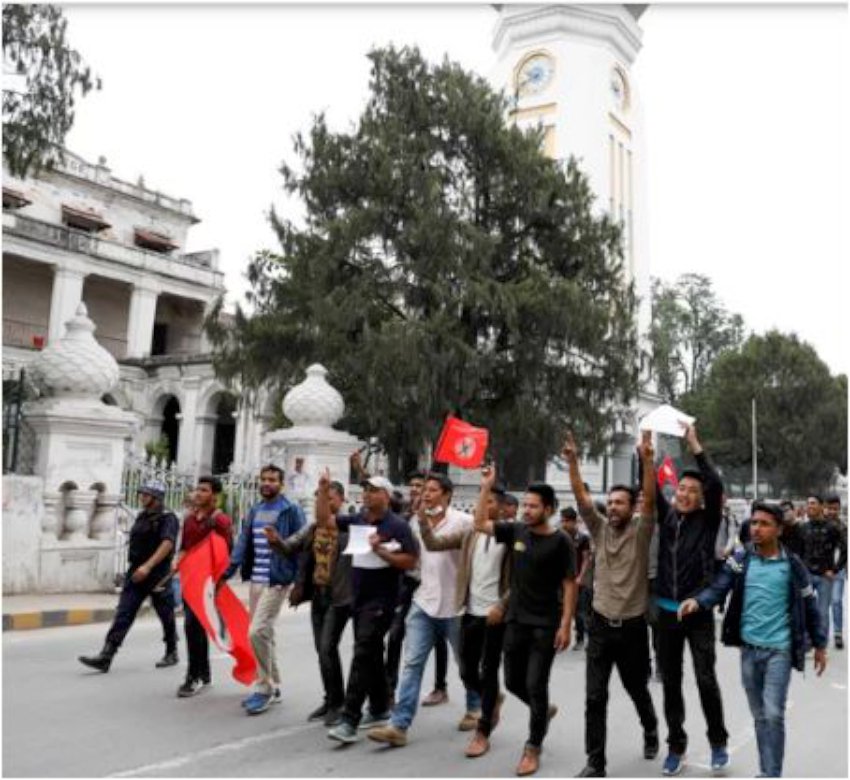 काठमाडाैं । पेट्रोलियम पदार्थ लगायत उपभोग्य बस्तुमा भएको मूल्य बृद्धिको विरोधमा नेपाल विद्यार्थी संघ सडकमा उत्रिएका छन् । शुक्रबार विहान नेविसंघले त्रिचन्द्र कलेजबाट नाराबाजी गर्दै प्रदर्शन गरेको हो । ‘नेविसंघले मूल्य बृद्धि फिर्ता गर, लोककल्याणकारी राज्य व्यवस्था कायम गर’ लगायतका प्ले कार्डसहित प्रदर्शन गरेको हो ।प्रदर्शनका क्रममा यातायात आवागमनमा प्रभाव परेको थियो ।