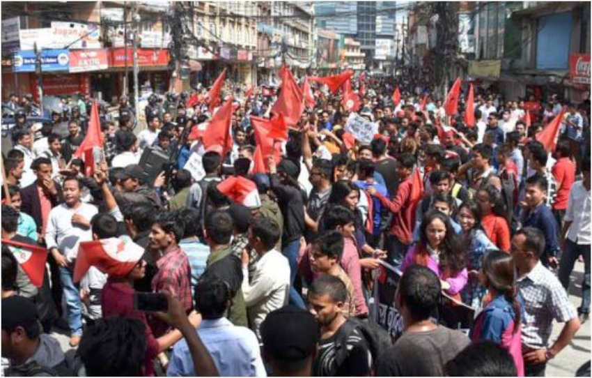 काठमाडौं । नेपाल विद्यार्थी संघले सरकारबिरूद्ध प्रदर्शन गरेको छ । पेट्रोलियम पदार्थ लगायत उपभोग्य बस्तुमा भएको मूल्य बृद्धिको बिरोधमा आइतबार नेविसंघले भृकुटी मण्डपबाट बिरोध प्रदर्शन गरेको हो । उनीहरूले मूल्य बृद्धि फिर्ता गर्नु पर्ने, लोककल्याणकारी राज्य व्यवस्था कायम गर्नुपर्ने भन्दै नारा लगाएका थिए । यसअघि नेविसंघले अर्धनग्न प्रदर्शन र प्रधानमन्त्रीको पुत्ला दहन लगायतका कार्यक्रम गरेको थियो ।
