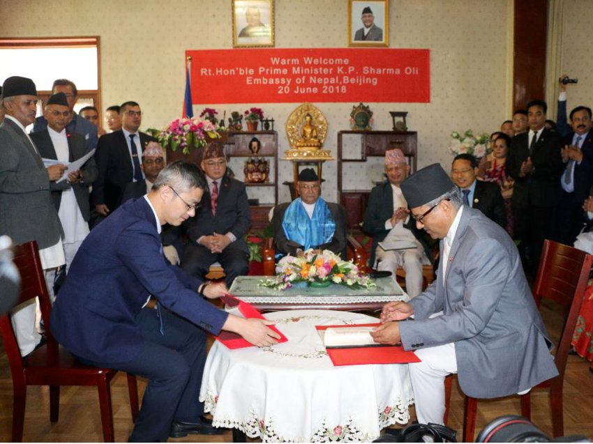 चीनको औपचारिक भ्रमणमा रहनुभएका प्रधानमन्त्री केपी शर्मा ओलीको उपस्थितिमा आज लगानी बोर्डका प्रमुख कार्यकारी अधिकृत महाप्रसाद अधिकारी र हुवासिनका तर्फबाट उपाध्यक्ष सू गाङले हस्ताक्षर गरे ।