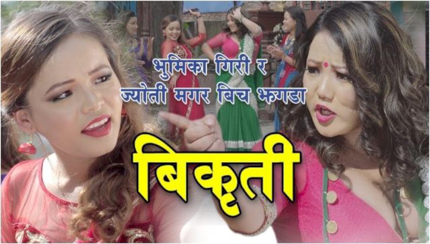 काठमाडाैं । तीज गीतको भिडमा अलि फरक कहानी लिएर ज्योति मगर र भुमिका गिरीको तीज धमाका गीत ‘विकृति’ युट्युबमा सार्वजनिक भएको छ । दुइ गायिकाहरु आपसमा आरोप प्रत्यारोप गरेर रोचक किसिमको गीत तयार पारेका छन् । भूमिका गिरी नयाँ पुस्ताकी आशालाग्दी गायीका हुन् भने ज्योति मगर नेपाली लोकदोहोरि कि ब्राण्ड हुन्। स्टेज कार्यक्रमहरुमा दुवै गायीका आफ्नो आफ्नो स्तरमा ब्यस्त नै छन् । दुवैको प्रस्तुतीकरणको आफ्नो आफ्नो फरक प्याटर्न रहेको छ । ज्योति मगर ग्ल्यामर प्रस्तुतिको लागि चिनिन्छिन भने भूमिका गिरि स्टेज प्रस्तुतिमा जातीय पोशाकहरु बढी प्रयोग गर्छिन । गीतमा पनि त्यहि किसिमका आरोपहरु भूमिकाले ज्योतिलाइ लगाउने र ज्योतिले त्यो आरोपको खण्डन गर्ने गरेका छन् । ज्योति मगर र भूमिका गिरीको स्वर रहेको गीतमा शब्द नेत्र अर्यालको र लय खेम सेंच्युरी रहेको छ भने गीतको भिडियो चर्चित निर्देशक प्रकाश भट्टले निर्देशन गरेका छन् । ज्योति मगर, भूमिका गिरी, मालती घले, अन्जिला वाइवा, सबिता परियार र सिमा घर्तीले अभिनय गरेको भिडियो भूमिका गिरीको आफ्नै युट्युब च्यानलबाट सार्वजानिक भएको छ ।