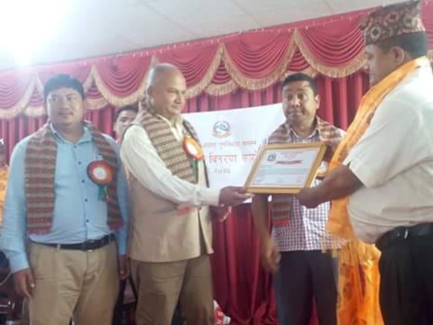 नीजि आवास पुर्नर्निमाण सम्पन्न गर्नेलाई प्रमाणपत्र