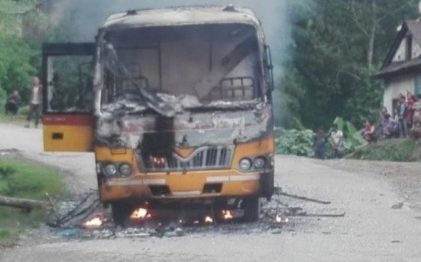 विप्लवका कार्यक्रताद्वारा स्कुल बसमा आगजनी, जताततै शंकास्पद बस्तु