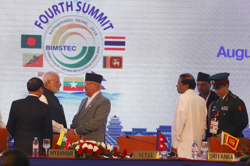 “शान्त, समृद्ध र दिगोपनाउन्मुख बङ्गालको खाडीको क्षेत्र” भन्ने मूल नाराका साथ शुरु भएको बिम्स्टेकको चौथो शिखर सम्मेलन सफल आयोजना गरेकामा सदस्य राष्ट्रका राष्ट्राध्यक्ष एंव सरकार प्रमुखले आफ्नो उद्घाटनसत्रको सम्बोधनका क्रममा नेपाल सरकार एंव प्रधानमन्त्री केपी शर्मा ओलीलाई आभार व्यक्त गरे । सरकार प्रमुखका रुपमा प्रधानमन्त्री ओली र भारतका प्रधानमन्त्री नरेन्द्र मोदीलगायत सम्मेलनमा सहभागी विशिष्ट पाहुना यो शिखर सम्मेलनमा पहिलो पटक सहभागी हुनुभएको छ । भारतीय प्रधानमन्त्री मोदीले आफ्नो लागि बिम्स्टेक शिखर सम्मेलन पहिलो भएको भन्दै यसलाई सदुपयोग गर्ने क्रममा सदस्य राष्ट्रका महिला सांसद र युवाका अलगअलग सम्मेलन गर्नेलगायत नयाँ कार्यसूची प्रस्ताव गरेका थिए । सङ्घीय लोकतान्त्रिक गणतन्त्र नेपालको संविधान कार्यान्वयनका क्रममा वर्तमान सरकारले छोटो अवधिको तयारीका बीच काठमाडौँमा यसप्रकारको पहिलो क्षेत्रीय सम्मेलनको आयोजना गरेको हो । सम्मेलनको उद्घटनअघि बुद्धको जन्मस्थल नेपालको राष्ट्राध्यक्षका हैसियतले राष्ट्रपति विद्यादेवी भण्डारीले राष्ट्रपति भवन शीतल निवासमा संयुक्त भेटवार्तासहित दिवाभोजको आयोजना गरी विशिष्ट अतिथिहरुप्रति हार्दिकता दर्शाएका थिए । सन् १९९८ देखि नेपाल यसको आमन्त्रित र सन् २००४ फेब्रुअरीमा थाइल्याण्डमा भएको छैटौँ मन्त्रिस्तरीय बैठकबाट नेपाल र भूटान पूर्ण सदस्य भएका थिए । यसअघि “सहकार्य, सहिष्णुता र समृद्धि” को मूल नारासहित म्यान्माको राजधानी नेपिटमा सन् २०१४ को मार्चमा बिम्स्टेकको तेस्रो शिखर सम्मेलन भएको थियो । बिम्स्टेकको अध्यक्षीय कार्यकाल हरेक दुई वर्ष हुने गर्छ । सन् १९९७ जुन ६ मा थाइल्याण्डको बैंककमा बिम्स्टेकको नामबाट बङ्गलादेश, भारत, श्रीलङ्का र थाइल्याण्ड सदस्य राष्ट्रबीच यो क्षेत्रीय सञ्जाल गठन भएको थियो । सन् १९९७ डिसेम्बर २२ को मन्त्रिस्तरीय बैठकबाट म्यान्मा यसको सदस्य भएको थियो । सन् १९९७ जुन ६ मा थाइल्याण्डको बैंककमा भएको प्रथम शिखर सम्मेलनबाट बिम्स्टेकको नामकरणलाई अनुमोदन गरेको थियो । यसको स्थायी सचिवालय बङ्गलदेशको राजधानी ढाकामा छ । यसअघि सन् २००४ जुलाई ३१ मा थाइल्याण्डको बैंकक, २००८ को १३ नोभेम्बरमा भारतको नयाँदिल्ली र २०१४ को मार्च ४ मा म्यान्माको नेपिटमा बिम्स्टेक शिखर सम्मेलन भएको थियो । सन् २०१६ मा भारतको गोवामा बिम्स्टेकको आउटरिच सम्मेलन सम्पन्न भएको थियो । बिम्स्टेकका मुख्य १४ उद्देश्य र कार्यसूचीमा वाणिज्य, लगानी, प्रविधि, पर्यटन, मानवीय स्रोत विकास, कृषि, मत्स्यपालन, यातायात र सञ्चार, कपडा र छालाजन्य उद्योग आदि छन् । यसले शिक्षा, प्राविधिक व्यावसायिक क्षेत्रमा ताल