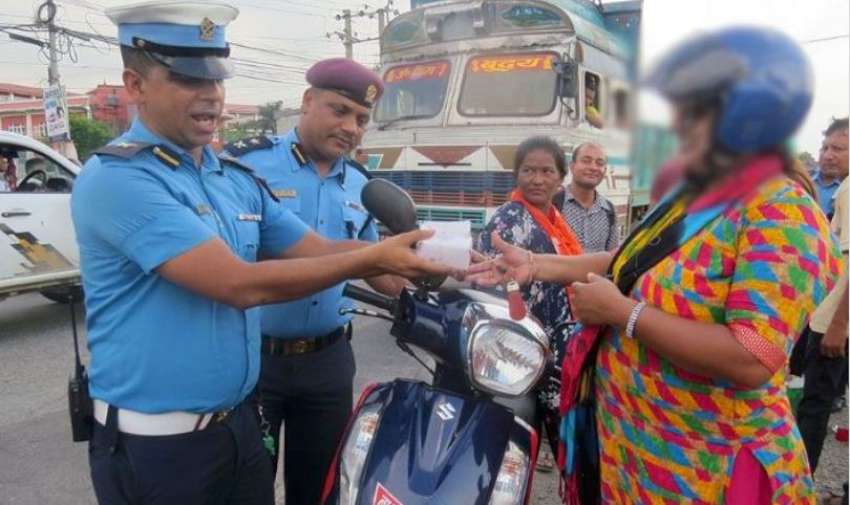 काठमाडौँ । गाडी सानो होस् वा ठूलो चालकले सवारी चालक अनुमतिपत्र (लाइसेन्स), गाडीधनी पुर्जालगायत कागजपत्र साथमा राख्नुपर्ने नियम छ । गाडीको अवस्था चुस्त हुनुपर्छ । ट्राफिक नियम पालना गरी चलाउनुपर्छ । नियम पालना नगरे कारबाही भोग्नुपर्छ । अचेल छडे जाँच गर्न जुनसुकै समय र ठाउँमा प्रहरी बस्छ। त्यसरी बस्ने टोलीले भेटे कारबाही स्वरूप जरिवाना तिर्नुपर्छ। आजको कान्तिपुर दैनिकमा यो खबर छ - पूर्व-पश्चिम राजमार्गअन्तर्गत रत्ननगरमा मंगलबार दिउँसो ट्राफिक नियम पालना भए/नभएको चेक गर्न प्रहरीले छडे जाँच थाल्यो। ट्राफिक नियम पालना नगर्ने चालकहरू एकपछि अर्को भेटिए। तर, योपटक प्रहरीले कारबाहीका लागि जरिवाना तिर्न भन्दै रसिद काटेन। नियम मिच्नेहरूले चकलेट पाए। अनि ट्राफिक प्रहरी प्रमुख, प्रहरी निरीक्षक वेदप्रसाद गौतमको हातबाट गुलियो खाजाको पोका पनि साथै पाए। ‘थाहा पाएर पनि नियम पालना नगर्ने भनेको लापरबाही हो। जरिवाना नै काट्नुपर्ने हो। तर तपाईंहरूलाई लज्जाबोध होस भनेर चकलेट बाँडेका हौं,’ ट्राफिक प्रमुख गौतम चालकहरूलाई सम्झाउँदै थिए। गल्ती पनि गर्ने गुलियो खाजा पनि पाउने, यस्तो किन? इलाका प्रहरी कार्यालय रत्ननगरका प्रमुख दयानिधि ज्ञवाली भने, ‘कहिले-काहीं मीठो तरिकाले पनि नियम सम्झाउँ भनेर हो नि। अरू बेला कारबाही नै हुन्छ।