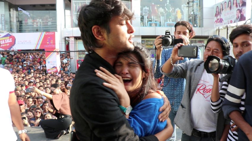 काठमाडौं। अहिले अधिकांश नेपाली चलचित्रहरुले प्रमोशनका धेरै फण्डा अपनाइरहेका छन् । विभिन्न उपहार, रिचार्ज, विदेश भ्रमणको अवसर । देशव्यापी कन्सर्ट गरेर चलचित्रको प्रमोशन गरिरहेको पाइन्छ । यसैबीच आउने शुक्रबारबाट ठूला मानिएका दुई चलचित्र प्रदर्शनमा आउँदैछन् । ‘रोज’ र ‘रामकहानी’ शुक्रबारबाट एकै साथ प्रदर्शनमा आउने तयारीमा रहेका छन् । बुधबारमात्रै चलचित्र ‘रोज’ले देशव्यापी कन्सर्ट सकाएको छ । एकसाता अघि पोखराबाट शुरुभएको कन्सर्ट मोफसलमा दमकमा सकिएको थियो । राजधानीमा भने गोंगबु र लगनखेलमा कन्सर्ट गरेको थियो । ‘रोज’ टिमले बुधबार गोंगबुस्थित बिएसआर फिल्म हल अगाडी कन्सर्टको आयोजना ग¥यो । थुप्रै दर्शक कन्सर्ट हेर्न पुगेका थिए । विशेष गरी ‘रोज’का नायक प्रदीप खड्काका युवाफ्यान भएकै कारण दर्शक बढी देखिन्थे । त्यसमाथि पनि युवती अझ बढी । चलचित्रका नायक प्रदीप खड्का, नायिकाद्धय मिरुना मगर, परमिता आरएल राणा, गायक प्रताप दास, हाँस्य कलाकार दिनेश काफ्ले, नवगायिका प्रज्ञा श्रेष्ठ लगायतको टिम कन्सर्टमा सामेल भएका थिए । शुरुमा प्रतापले गीत गाउँदै गर्दा माहोल तातिएको थियो । जब नायक प्रदीप खड्का स्टेजमा उत्रिए युवायुवतीले उधुम मच्चाउन थाले । प्रदीपले चलचित्र बारे स्टेजबाटै जानकारी दिदै थिए । युवतीहरु स्टेज तलबाटै हुटिङ गरिरहेका थिए । धेरैबेर अघिदेखि घाममा निकै चिच्याईरहेकी एक युवती बेहोस् भइन् । ‘रोज’कै स्वयमसेवक र अन्यले उनलाई स्टेजको छेउ लगे र केहिबेरपछि उनकको होस आयो । यस्तै एक युवाले प्रदीपको नजिक जान नदिएको भन्दै प्रहरी माथि नै हातपात गरे । हातपात गरेकै कारण प्रहरीले भ्यानमा राखेर चौकी पु¥यायो । यस्तै एक युवती जबरजस्ती गर्दै स्टेजमै आएर प्रदीपलाई बेस्सरी अंगालीन्, र निकै रोइन् । यस्ता थुप्रै फ्यानहरु गोंगबुको कन्सर्टमा देखियो । चलचित्रको प्रचारकालागी हिडिरहेको टिमले धेरै ठाउँमा यस्ता घटना बेहोर्दै आएको थियो । ‘दर्शकले आफूलाई भेट्न खोज्दा सकेसम्म धेरै समय दिने गरेको छु,’ प्रदीपले भने, ‘मैले मिलेसम्म धेरै समय दिने गरेको छु, म सँग एउटा तस्बिरमात्र खिचाउँछु भनेर धेरैबेरदेखी कुर्ने गर्नुहुन्छ, मैले इन्कार गरेभने उहाँहरुको मन दुख्छ त्यो बुझेको छु ।’ प्रदीपले देशव्यापी कन्सर्टमा जादा काठमाडौंमा जस्तै थुप्रै फ्यान दर्शक भेटेको बताए । उनले मोफसलका ६ शहरमा कन्सर्ट सकेर काठमाडौंमा अन्तिममा कन्सर्ट गरेको बताए । टिमसँगै चलचित्रका प्रोडक्सन म्यानेजर बुद्धिलाल मगरपनि सँगै थिए ।