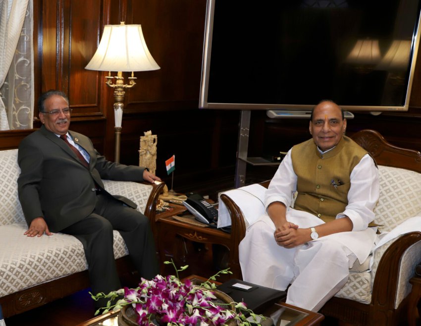 नयाँ दिल्ली। नेपाल कम्युनिष्ट पार्टी (नेकपा)का अध्यक्ष तथा पूर्व प्रधानमन्त्री प्रचण्ड र भारत सरकारका गृहमन्त्री राजनाथ सिंहबीच आज दिउँसो भेटवार्ता भएको छ । भेटमा नेपाल भारत सम्बन्धका लागि अहिले सकारात्मक वातावरण बनेको भन्दै नेपालको आर्थिक समृद्धिमा दुबै देश मिलेर अघि बढ्ने छलफल भएको थियो । भेटमा अध्यक्षले नेपाल र भारतबीच भएका समझदारीको प्रभावकारी कार्यान्वयनमा जोड दिएे । अध्यक्षले आज बिहान प्रवासी नेपालीसँग भएको छलफलमा प्रवासीहरुले सीमा क्षेत्रमा नेपाली माथि हुने गरेका लुटपाटका घटनाका सम्बन्धमा गृहमन्त्रीको ध्यानाकर्षण गराएका थिए । गृहमन्त्री सिंहले सीमा क्षेत्रका सबै अधिकारीहरुलाई तत्कालै खबर गरी घटना घट्न नदिने विश्वास दिलाए ।
