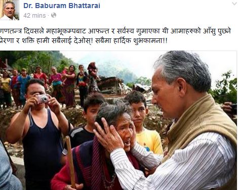 भावुक तस्बिर राख्दै बाबुरामले भने ‘आँशु पुछ्ने प्रेरणा र शक्ति मिलोस्,’