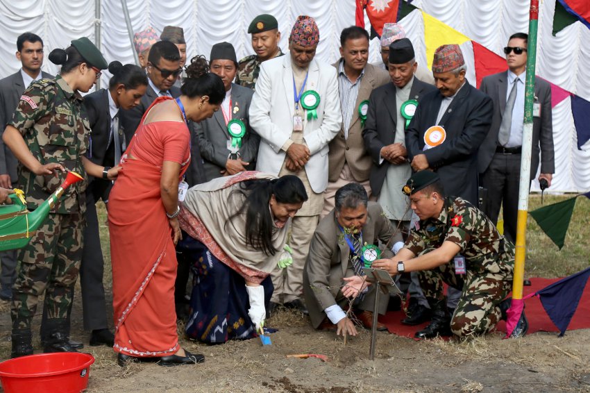 स्वयम्भू परिसरमा विरूवा रोप्न पुगिन् राष्ट्रपति भण्डारी