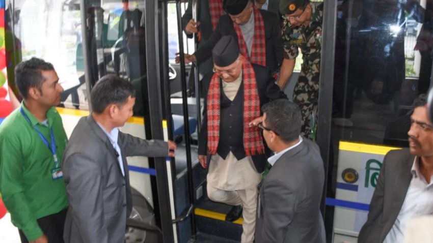 विजुली बस चढेर पुल्चोकबाट सिंहदरबार पुगे प्रधानमन्त्री ओली