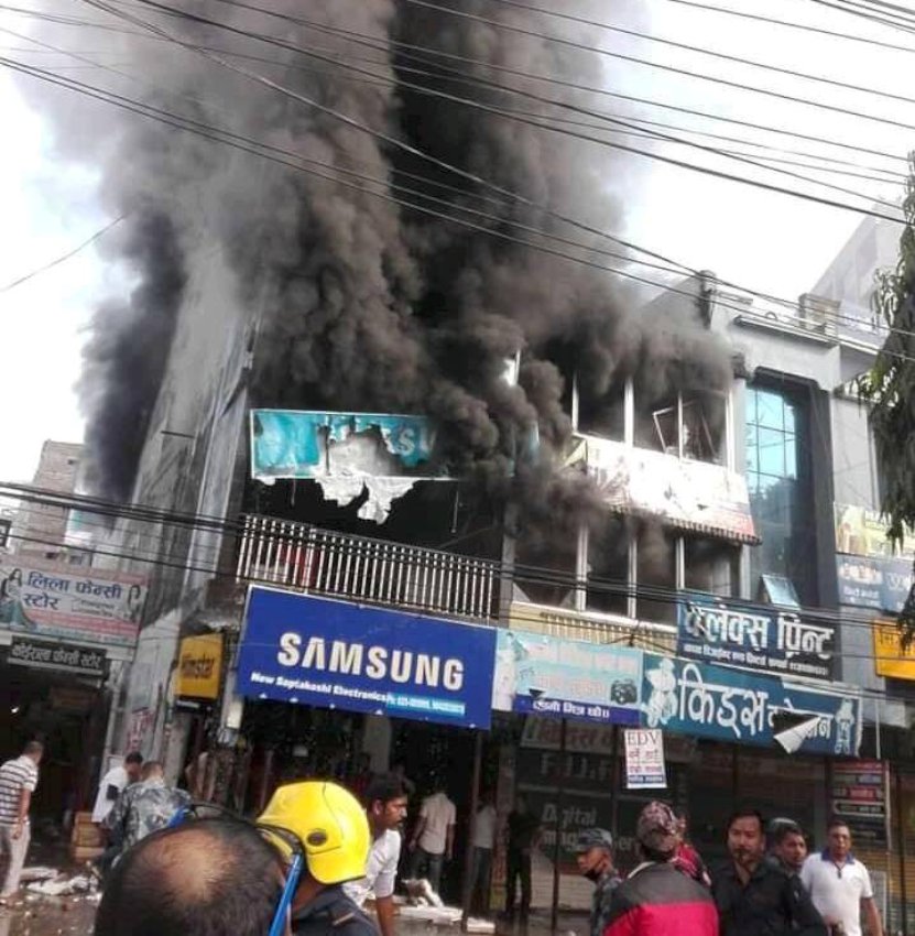 इटहरीको व्यापारिक भवनमा भीषण आगलागी