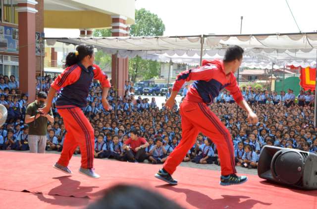 काठमाडौं, भूकम्पपश्चात आइतबारदेखि खुलेका स्कुलहरुमा भूकम्पको त्रास र तनावबाट मुक्ति दिलाउने उद्देश्यले मनोरञ्जन प्रदान गर्न नेपाल प्रहरीले मंगलबार ललितपुरको सेन्ट मेरिज स्कुल परिसरमा विद्यार्थीहरुलाई मनोरञ्जनात्मक सांस्कृतिक कार्यक्रम प्रस्तुत गरेको छ । स्कुलमा नेपाल प्रहरी संगीत विद्यालयका कलाकारहरुले नृत्य, गायनलगायतका विविध मनोरञ्जनात्मक सांगीतिक कार्यक्रम प्रस्तुत गरेका थिए । कार्यक्रमबाट विद्यालयका बालबालिकाहरु उत्साही भई भरपूर मनोरञ्जन लिए । यसअघि नेपाल प्रहरी संगीत विद्यालयको टोलीले भूकम्पबाट अतिप्रभावित जिल्लाहरुका शिविरमा मनोरञ्जनात्मक सांस्कृतिक कार्यक्रम प्रस्तुत गरिसकेको छ । \"PHQ \"PHQ \"PHQ \"PHQ \"PHQ \"PHQ \"PHQ-640\"