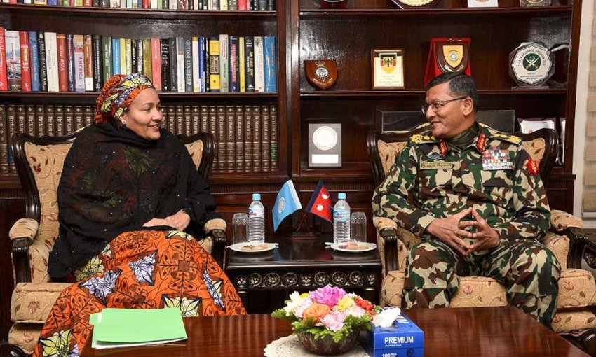 संयुक्त राष्ट्रसंघीय उप-महासचिव अमिना काठमाडौंमा, प्रधानसेनापति थापासँग भेट