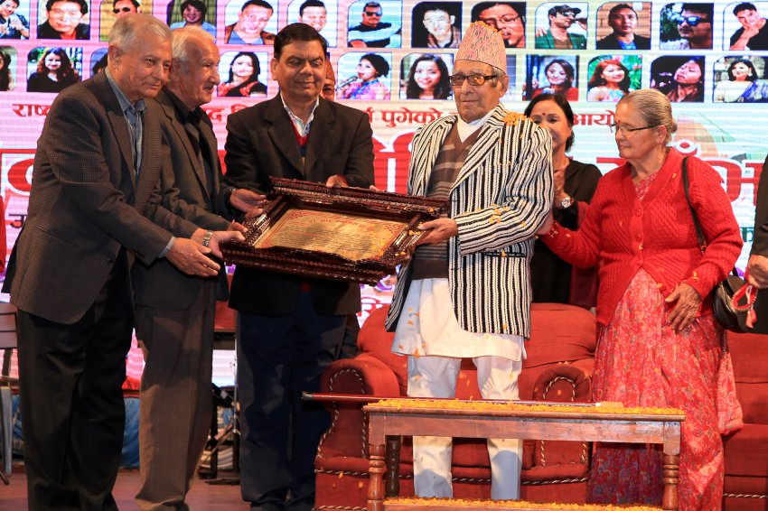 काठमाडौं । गीतकार डी.आर. उपाध्यायले नेपाली एल्बम प्रकाशनमा एकैपटक सबैभन्दा धेरै एल्बम निकालेर नयाँ रेकर्ड राखेका छन् । राष्ट्रकवि माधव प्रसाद घिमिरेको हातबाट एकैपटक सात एल्बम बिमोचन गराएर यो कृर्तिमानी काम गरेका हुन्। नाचघरमा आयोजित समारोहमा वरिष्ठदेखि कनिष्ठ गीतकार , संगीतकार, गायक गायिका, चलचित्रकर्मी, पत्रकारहरुको वाक्लो उपस्थिती रहेको थियो ।जखम, माउन्टेन मेलोडी,नसालु नजर,जोहो,अन्तराप,प्रतिनाद र सहेली एकैपटक विमोचन भएका थिए।यि एल्बमहरुमा बुलु मुकारुंग , सन्तोष श्रेष्ठ र सागर अधिकारीको संगीत छ भने तिन दर्जन गायक गायिकाले गीत गाएका छन् । बिमोचनको साथमा राष्टकवि माधब प्रसाद घिमिरे र उनकी धर्मपत्नी महाकाली घिमिरेलाई नगद ५१ हजारको थैली सहित स्वर्णपत्र सहित सम्मान गरिएको थियो । यसको अलबा संगीतकार राजु सिंहको अगुवाईमा प्रत्यक्ष बाद्यबादन सहित ११ वटा गीत प्रस्तुत गरिएको थियो । ३ वटा म्युजिक भिडियो पनि देखाइएको थियो ।डी।आरका गीत सुन्दा उनी बहुआयमिक देखिन्छन् । शब्द केलाउन सिपालु छन् ।नेपाली संगीत भन्डारमा राम्रा राम्रा एल्बम दिएर प्रंशसा योग्य काम गरेका छन् ।