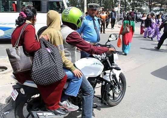 काठमाडौं, प्रस्तुत तस्बिर हेर्नोस्– सहजै कुरा बुझ्नुहुन्छ । एक त प्रहरी अधिकारीले प्रयोग गर्ने मोटरसाइकल, तस्बिरमा स्पस्टै देखिएको छ– सेतो प्लेटमा रातो अक्षर लेखिएको सरकारी नम्बर प्लेट । त्यसमाथि ३ जना सवार । सरकारी पोसाक वा परिचयपत्रविना कार्यालय या ड्युटीको समयबाहेक सरकारी कर्मचारी या अधिकारीलाई नै सरकारी सवारी साधन प्रयोग गर्ने अधिकार छैन– नेपालमा प्रचलित नियम–कानुन र मान्यताअनुसार । झन् सवारी व्यवस्थापनकै जिम्मा लिएको प्रहरी या ट्राफिकले नै प्रयोग गर्ने मोटरसाइकलमा प्रशस्तै झोलाझ्याम्टासहित निजी या पारिवारिक कामका लागि ३ जना सवार भई सडकमा ड्युटी गरिराखेका ट्राफिककै अगाडि खडा भएको यो मोटरसाइकलका चालक र जिम्मेवार व्यक्तिहरु को–को हुन् र तीमाथि के–कस्तो कारबाही भयो ? सम्बन्धित निकायले स्पष्ट पारोस् ।