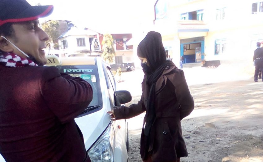 स्याङ्जा ।आइतबार करिब ११ बजे जिल्ला प्रहरी कार्यालय अगाडि बा२ज २०९२ नम्बरको सेतो कलरको ट्याक्सी रोकियो । ट्याक्सीबाट पहिले एक पुरुष निस्किए । उनलाई पछ्याउँदै गाढा रातो रङ्गको लामो लुङ्गीमाथि कालो रंगको ओभर कोट लगाएकी, पुरै टाउको छोप्ने गरी कालो पछ्यौरा बेरेको, कालै माक्स लगाएकी एक महिला निस्किइन् ।