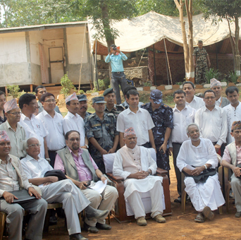 राष्ट्रपति डा. रामवरण यादव जिल्ला सदरमुकाम धादिङमा भूकम्प प्रभावित क्षेत्रको अध्ययन गर्ने शिलसिलामा तराइका नेताहरु सहित । तस्बिर : सीताराम अधिकारी/रासस, धादिङ ।