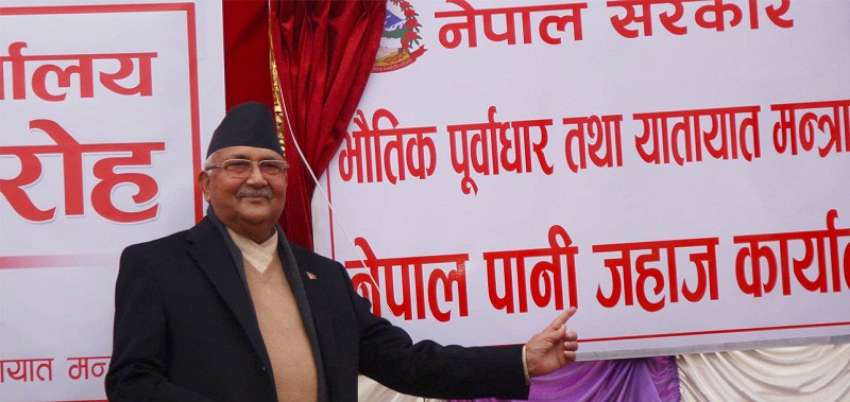 काठमाडौँ ।प्रधानमन्त्री केपी शर्मा ओलीले आज ललितपुरको एकान्तकुनामा नेपाल पानीजहाज कार्यालयको उद्घाटन गरेका छन् । भौतिक योजना तथा यातायात मन्त्रालयले आयोजना गरेको उद्घाटन कार्यक्रममा प्रधानमन्त्री ओलीले कार्यालयको स्थापनाले पानीजहाजको शुरुआत र विकासका लागि ढोका खोलेको बताए । नेपालमा धेरै नदीमा जल यातायातको सम्भावना रहेकाले नेपाल पूर्णरूपमा भूपरिवेष्ठित देश नभएको उनले औँल्याए । उनका अनुसार भारतको गङ्गा नदीमा नेपालकै नदीबाट सुख्खायाममा ७२ प्रतिशत र वर्षायाममा ४० प्रतिशत पानी नेपालबाट नै जान्छ । उनले भने, \'भारतका ठूला नदी र समुन्द्रको टाउकोमा बसेर हामी भूपरिवेष्ठित भनेर खुम्चनु हुँदैन ।\' अहिले रेलभन्दा पनि जलयातायात चाँडो सञ्चालनमा आउने प्रधानमन्त्री ओलीले विश्वास व्यक्त गरे । उनले यहाँको खोलाका चौडाइ र गहिराइका आधारमा जहाज निर्माण गर्न पनि इञ्जिनीयरहरुलाई सुझाव दिए । उ नले भने, \'अहिले कस्तो जहाज बन्ने गर्छ, त्यो हेरेर होइन यहाँको भूबनोटअनुसार जहाज निर्माण गर्नुपर्छ ।\' प्रधानमन्त्री ओलीले विसं २०२७ मा नै पानीजहाजको सम्भावनाका बारेमा अध्ययन भएको पाएको बता । गत वर्ष भारत भ्रमणमा जाँदा आफूले पानीजहाज सञ्चालन र काठमाडौँ–रक्सौल रेलको सम्भावनाका विषयमा छलफल भएको उनले जानकारी दिए। भारतसँग ‘कनेक्टिभिटी’ (सम्पर्क सञ्जाल)मा नयाँ आयाम थपिएको उनले औँल्याए । उनले भने, \'अहिलेसम्म सडक र हवाईमार्गबाट मात्रै जोडिएकामा जल यातायात र रेल यातायातबाट पनि हामी जोडिँदैछौँ ।\' भौतिक पूर्वाधार तथा यातायातमन्त्री रघुवीर महासेठले राष्ट्रिय झण्डा राखेर पानीजहाज चलाउनु नेपालका लागि गर्वको विषय भएको बताए । भूपरिवेष्ठित देशमा पानीजहाज धेरै नेपालीले असम्भव विषय सोच्ने गरेको उल्लेख गर्दै उनले भने, \'हिजो पानीजहाज सम्भव छ र रु भन्नेहरुले नै हामीलाई घच्घच्याइरहनुभएको थियो ।\' मन्त्रालयका सचिव मधुसुदन अधिकारीले अहिलेसम्म सडक यातायात र हवाई यातायात मात्रै सञ्चालनमा रहेकामा जल यातायात र रेल यातायातको शुरुआत र विस्तार गर्न मन्त्रालय लागिपरेको बताए । मन्त्रालयका सहसचिव गोपालप्रसाद सिग्देलले जल यातायात हवाई र सडक यातायातभन्दा सस्तो हुने औँल्याए । मन्त्रिपरिषद्को गत पुस २९ गतेको बैठकले उपसचिवको नेतृत्वमा १६ कर्मचारी रहने गरी कार्यालय स्थापनाको निर्णय गरेको थियो ।