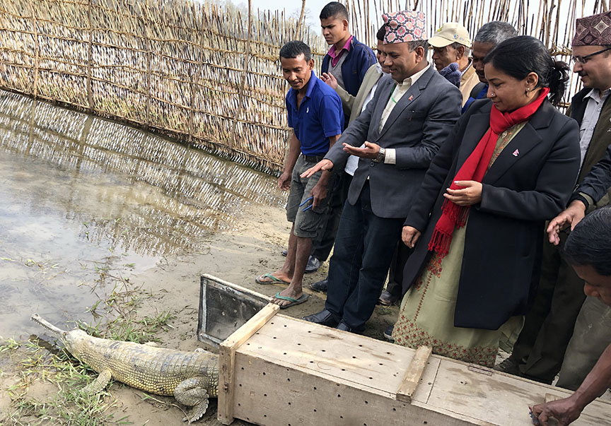 भरतपुर । चितवन राष्ट्रिय निकुञ्जले करिब ५ वर्ष उमेर पुगेका २४ घडियाल गोहीलाई राप्ती नदीमा छाडेको छ । निकुञ्जस्थित गोही प्रजनन केन्द्रमा रहेका घडियालहरुलाई ५ वर्ष उमेर पुगेपछि नारायणी, राप्ती तथा बबई नदीमा छाड्ने गरिएको छ । शुक्रबार एक कार्यक्रमका बीच गोहीहरुलाई भरतपुर महानगरपालिका प्रमुख रेनु दाहाल र चितवन राष्ट्रिय निकुञ्जका प्रमुख संरक्षण अधिकृत वेदप्रसाद ढकालले संयुक्त रुपमा छाडेकी हुन् ।