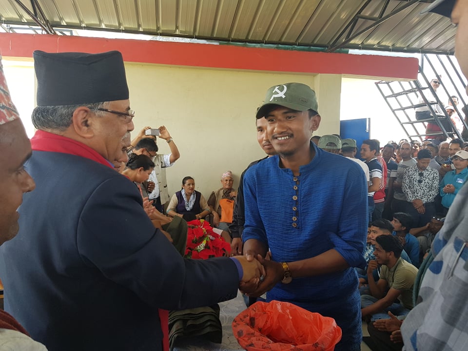 चितवन । नेपाल कम्यनिष्ट पार्टीका अध्यक्ष प्रचण्डले नेपाली काँग्रेस र राप्रपा परित्याग गरी पार्टीमा वेश गर्ने नेता तथा कार्यकर्तालाई आज स्वागत गरेका छन् । चितवनको माडी नगरपालिकामा आयोजित एक कार्यक्रममा अध्यक्ष प्रचण्डले अबिर र हँसिया हतौडा अंकित टोली लगाई पार्टीमा स्वागत गर्नुभएको हो ।