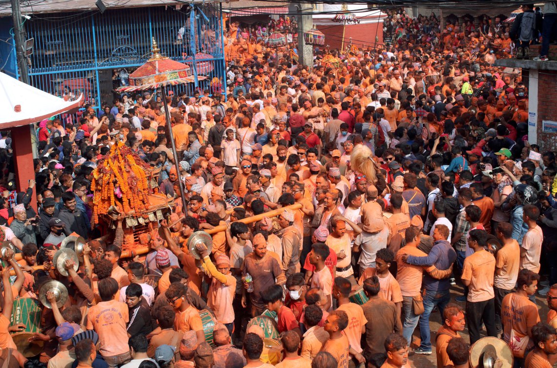 भत्तपुर । बिस्केट जात्राको अवसरमा मध्यपुरथिमिका स्थानीयवासीले आज विहानैदेखि हर्षोल्लासका सिन्दुर खेलेर सुथः सिया जात्रा मनाएका छन् ।