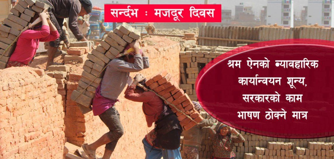 काठमाडौं । श्रम, रोजगार तथा सामाजिक सुरक्षा मन्त्रालयले गत आर्थिक वर्षदेखि लागू हुनेगरी श्रमिकको न्यूनतम पारिश्रमिक १३ हजार ४ सय ५० निर्धारण गर्यो । न्यूनतम पारिश्रमिक निर्धारण भएपछि श्रमिकहरूको सामाजिक सुरक्षाका लागि भन्दै \'योगदानमा आधारित सामाजिक सुरक्षा कार्यक्रम\' पनि लागू गरियो । २०७४ मा बनेको श्रम ऐनले काम गर्ने श्रमिकलाई सैद्धान्तिक रूपमा केही बढी सुविधा दिन खोजेको भएतापनि व्यावहारिक रूपमा परिस्थिति श्रमिकको पक्षमा छैनन् ।