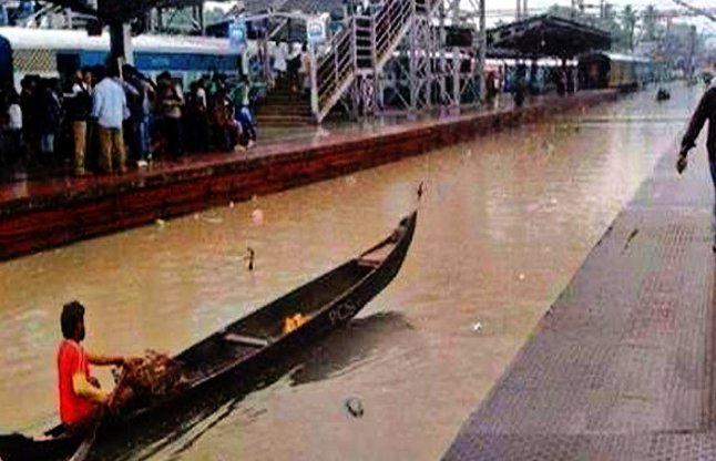 १० वर्षपछि मुम्बईमा यति धेरै वर्षाः रेलवे ट्र्याकमा चल्यो डुङ्गा (फाेटाेफिचर)